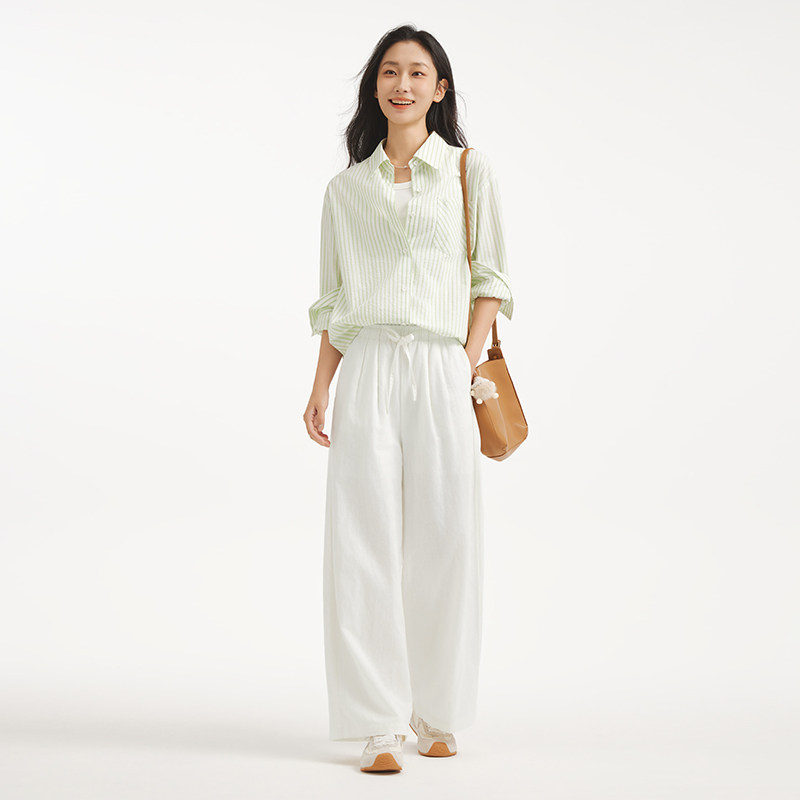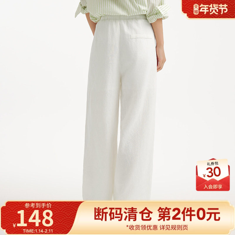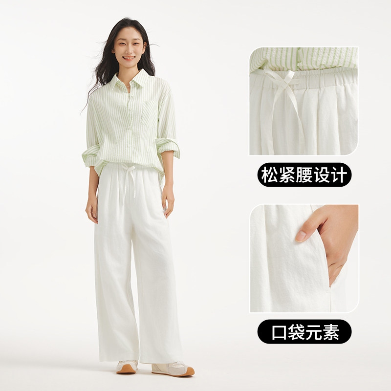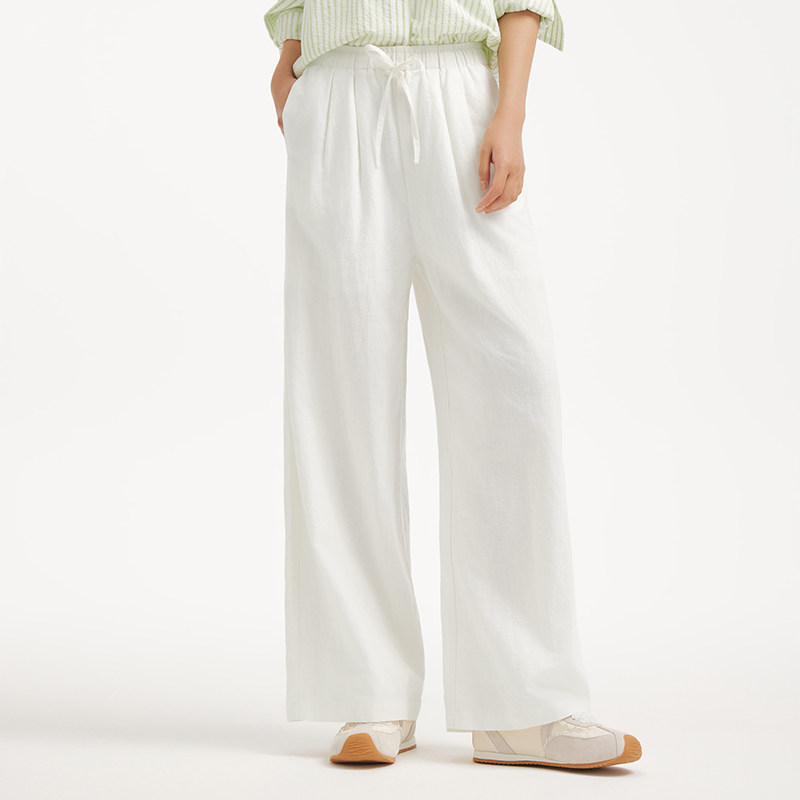 热风2025年夏季新款女士亚麻棉麻透气高腰阔腿垂感显瘦长裤阔腿裤