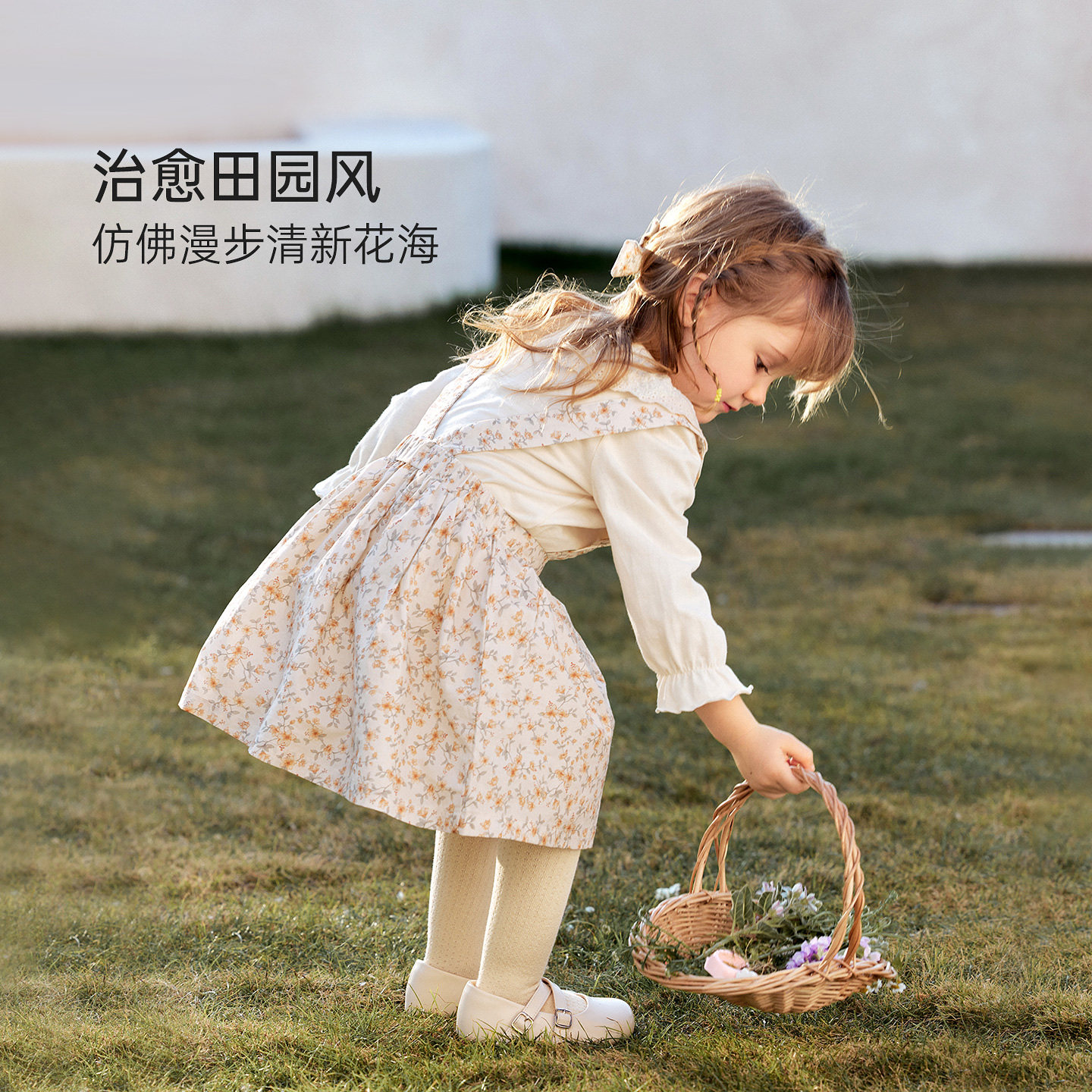 babylove女宝宝背带裙春秋纯棉裙子洋气百搭碎花公主裙花栀漫歌