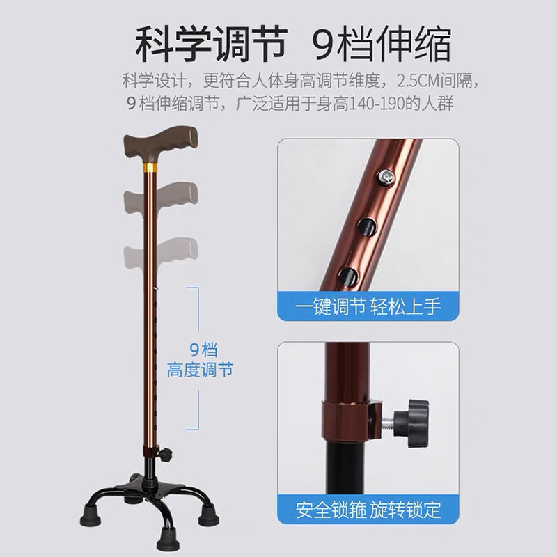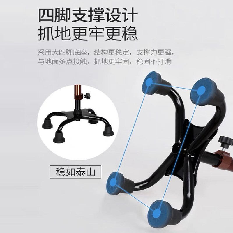 拐杖手杖老人四脚老年人扶手杖轻便防滑拐棍拐行走橡胶助力登山