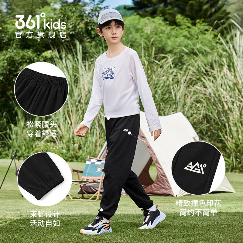 361°童装儿童男童运动针织长裤2026春新款中大童亲肤防风裤子