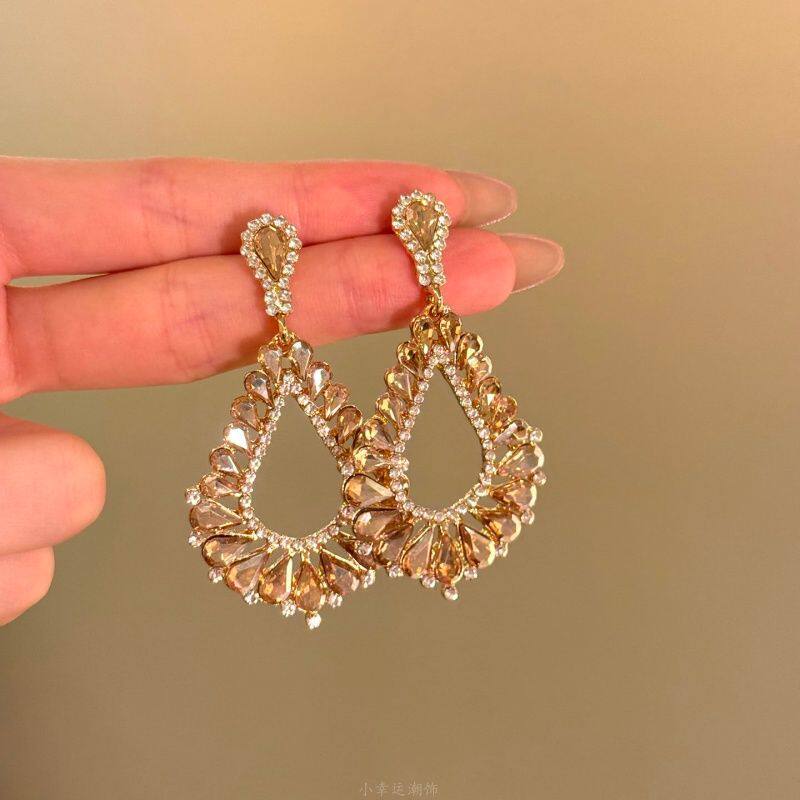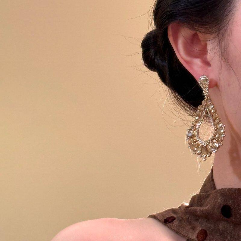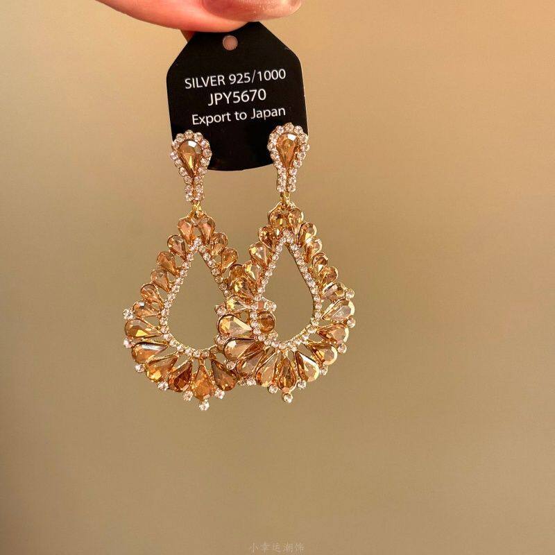 罗浮珍宝~金色满钻重工夸张耳钉女宴会绝美气质耳饰独特设计耳环