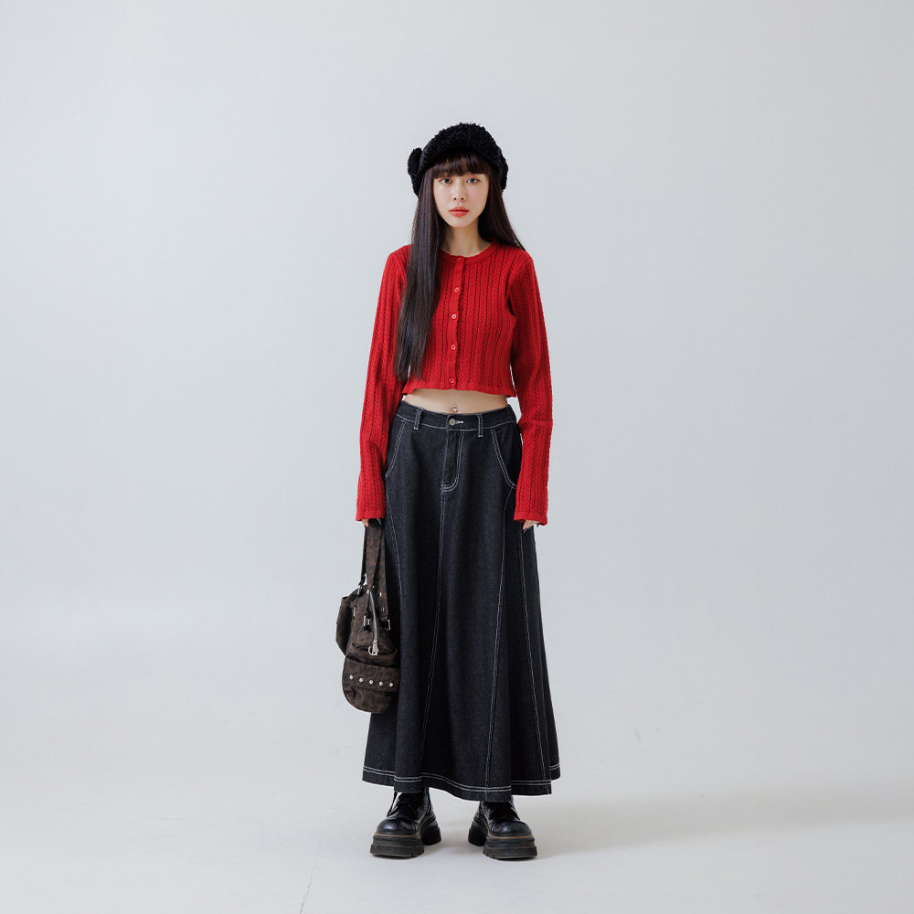 QUEENSHOP 2025秋冬新品女装镂空缇花织纹排扣针织上衣02011195