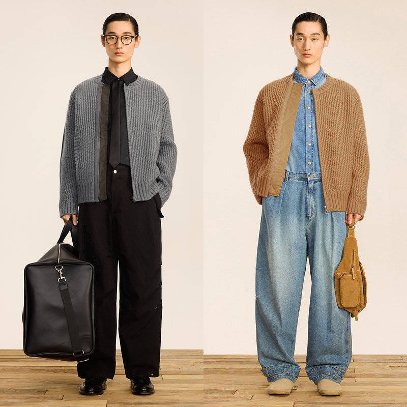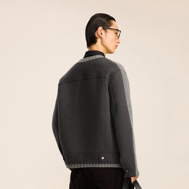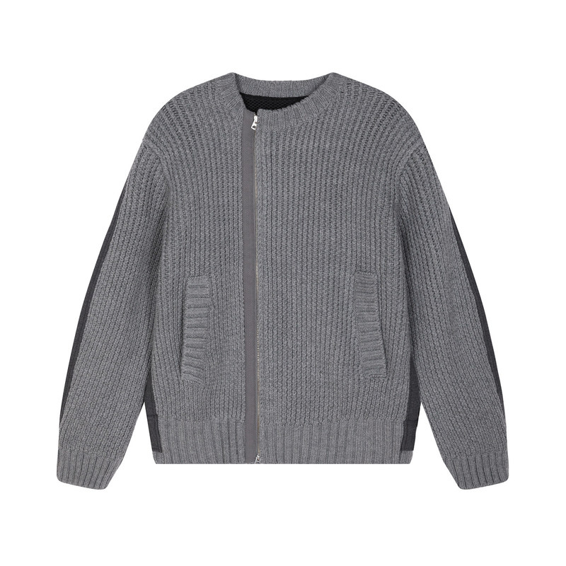 速写男装秋冬新品宽松休闲开襟毛衫长袖复古拼接设计时尚潮流外套