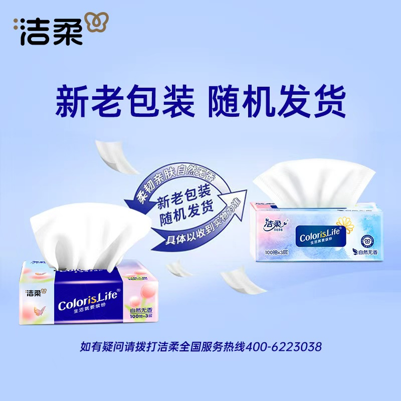 洁柔缤纷抽纸3层100抽软抽家用面巾纸柔软实惠装可湿水亲肤加厚