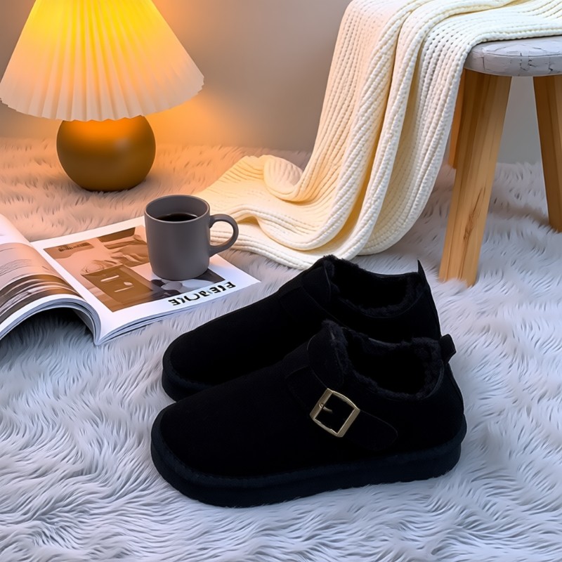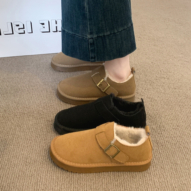 星期六复古加绒棉鞋女冬2025新款皮带扣软底保暖毛毛鞋加厚雪地鞋