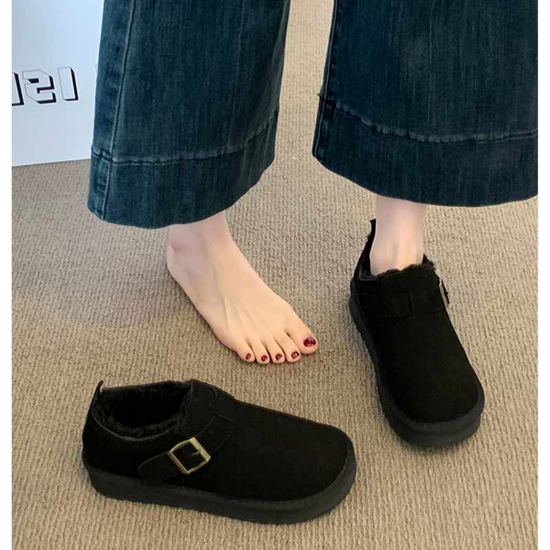平底加绒保暖勃肯鞋毛毛棉鞋女2025新款冬季雪地靴豆豆鞋毛绒黑色