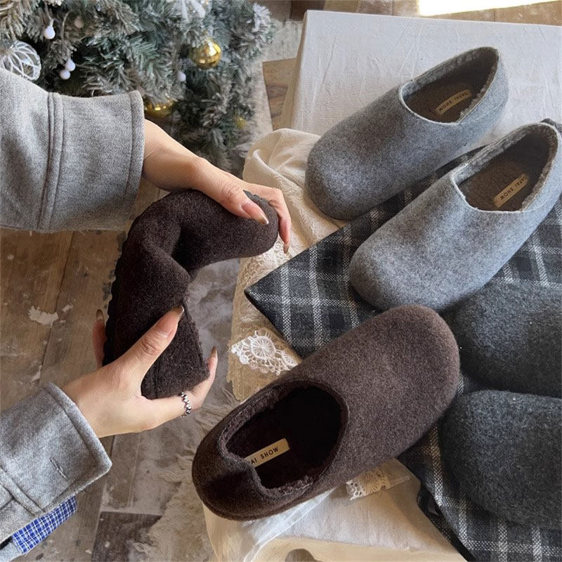 TATAFOCUS~加绒毛毛鞋韩版圆头皮带扣2025冬季新款勃肯鞋女35-28