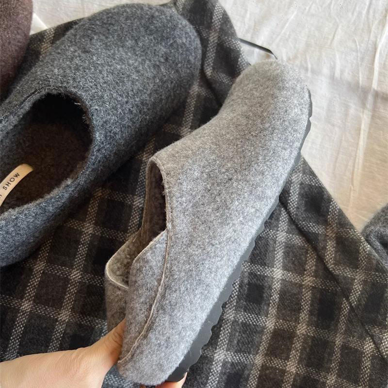 两穿勃肯鞋女2025新款秋冬加绒毛毛半拖鞋厚底一脚蹬豆豆棉鞋毛绒