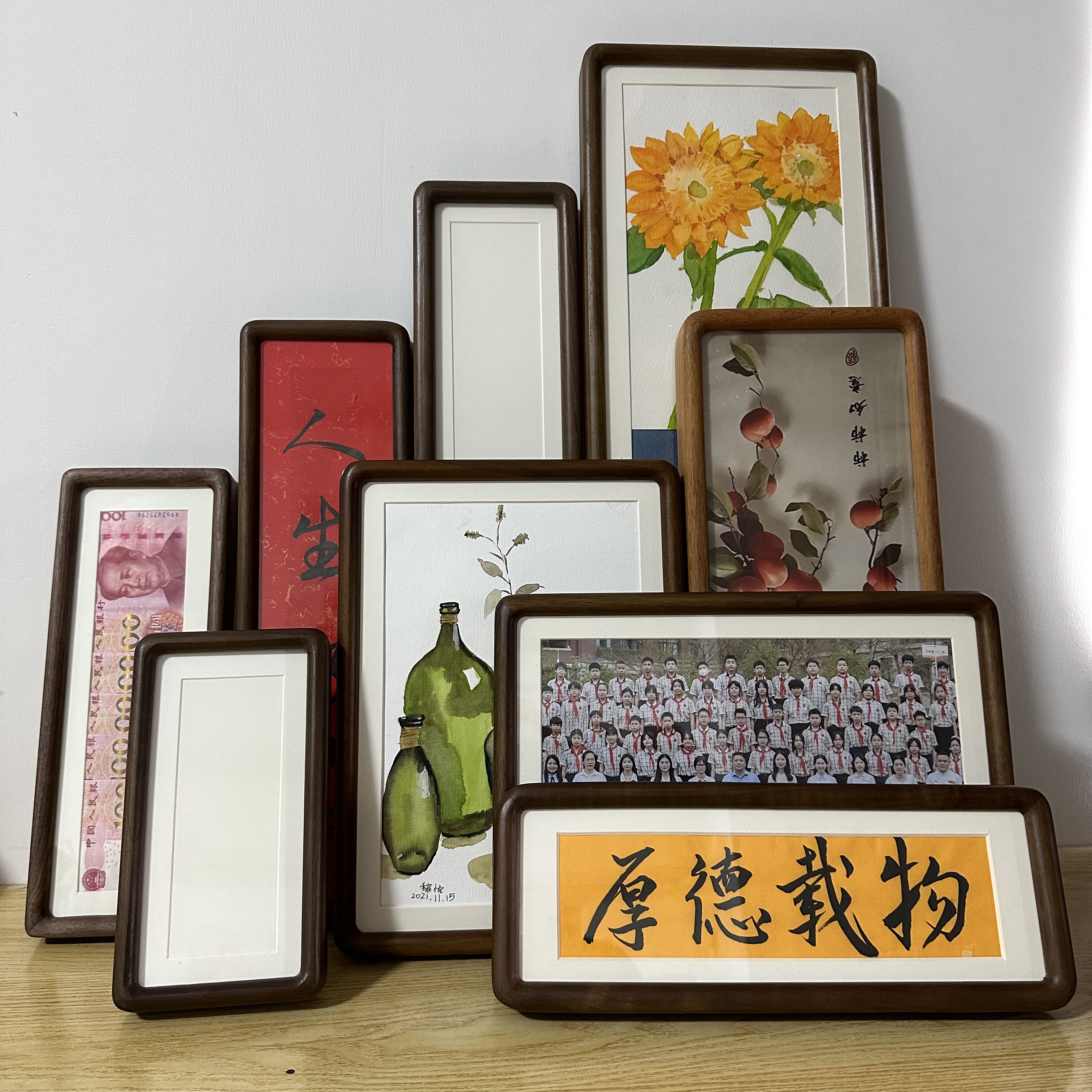 黑胡桃榫卯实木相框圆角长方形书画作品中式画框长条国画相框