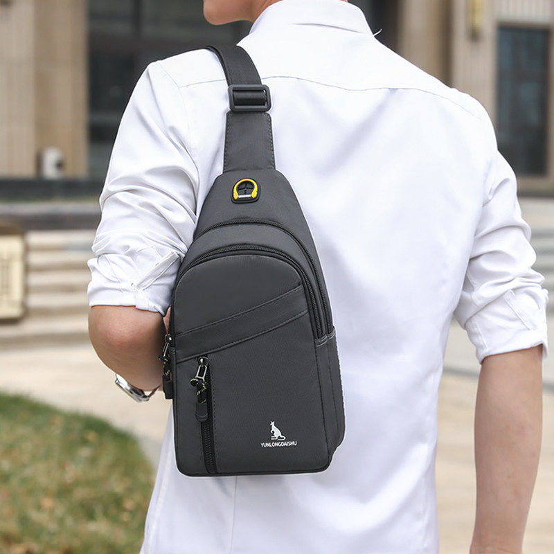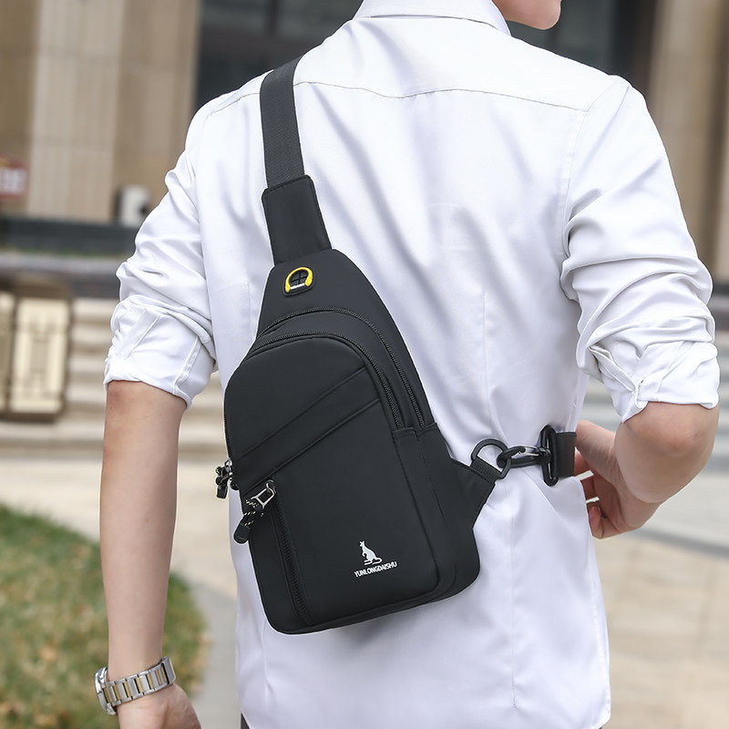 彬澳袋鼠男士胸包休闲斜挎包牛津布时尚小背包胸前单肩包韩版男包