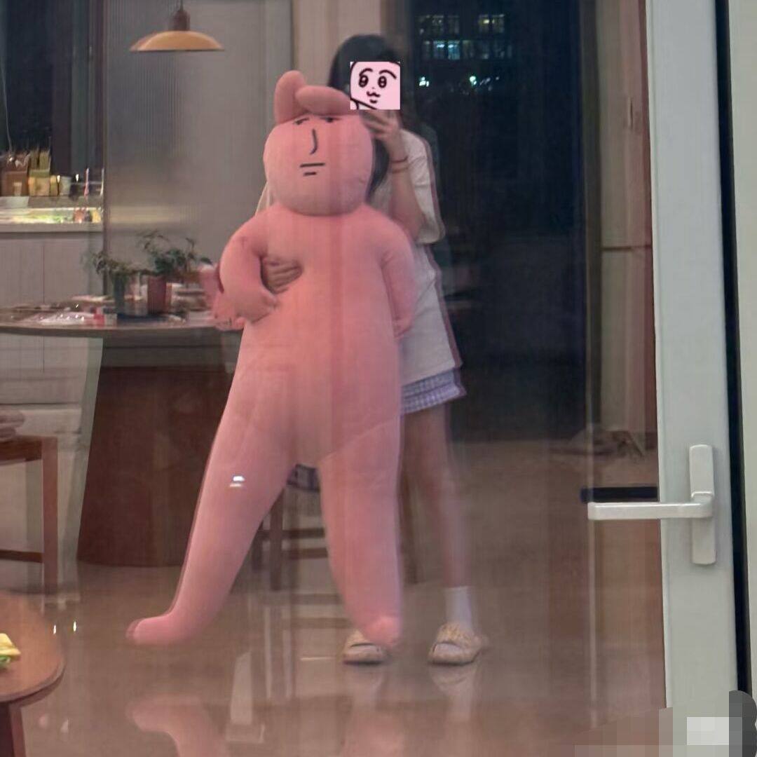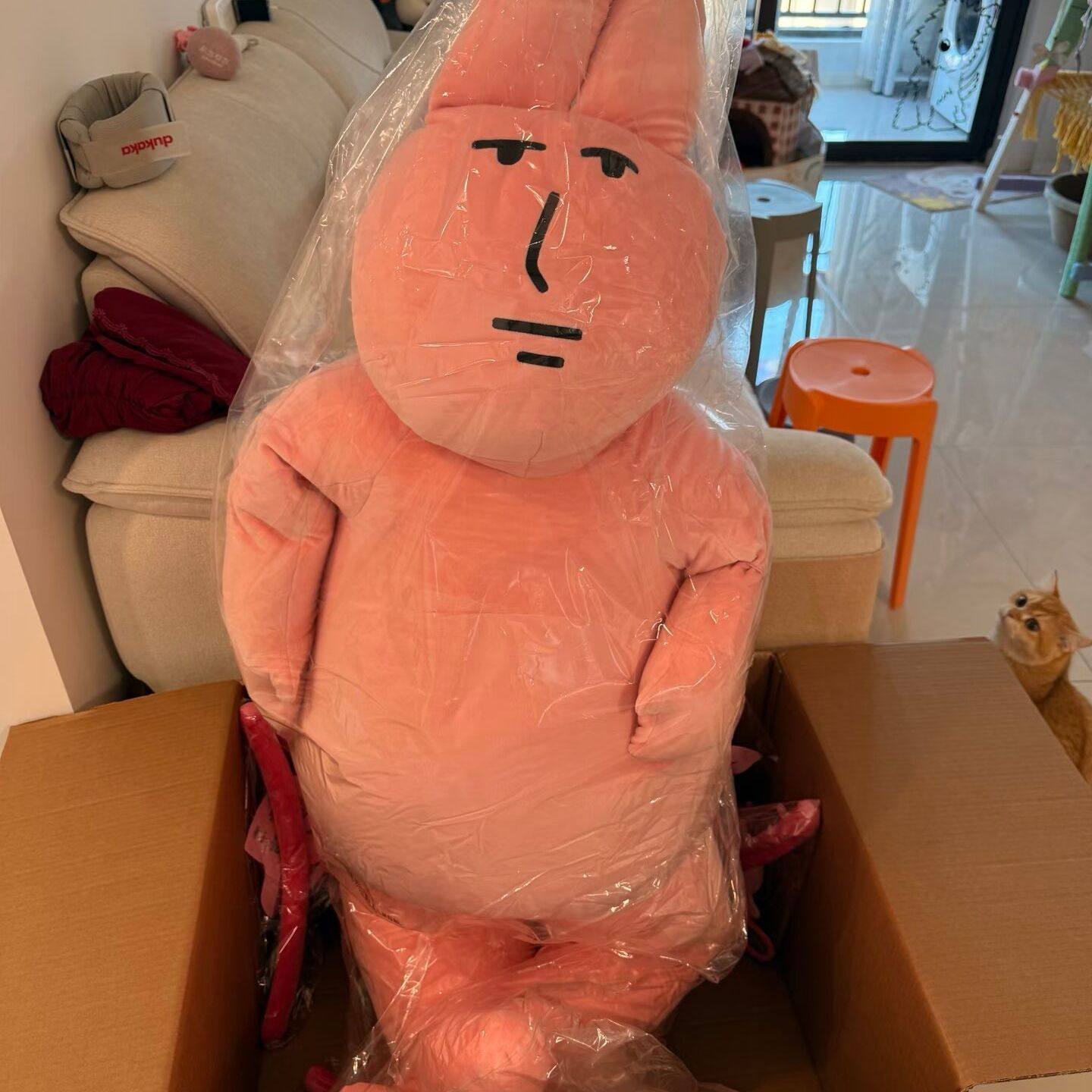 圣诞圣诞创意粉红兔子玩偶搞怪沙雕毛绒玩具长条靠垫抱枕生日礼物