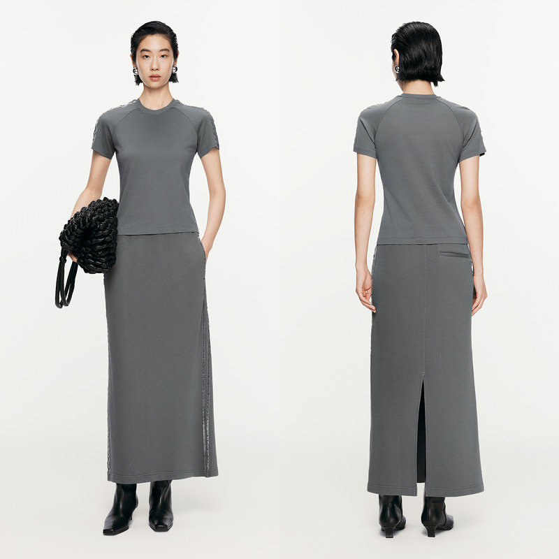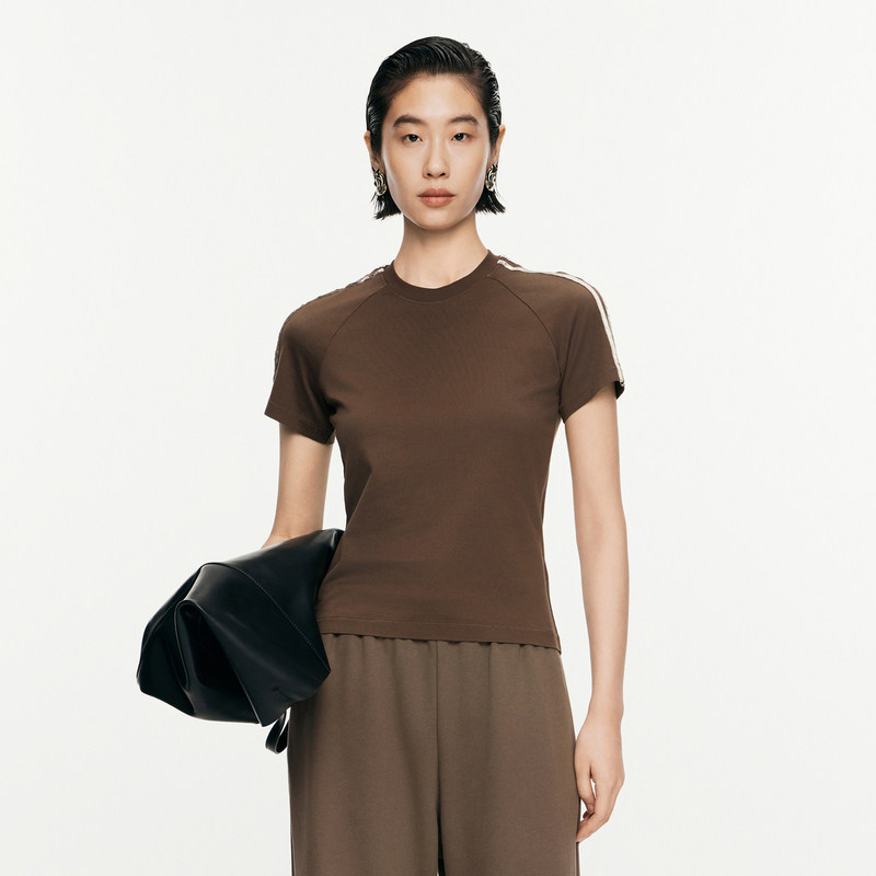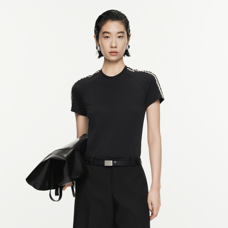 JNBY/江南布衣春秋T恤女棉质修身圆领微弹拼接短袖休闲5O8111450