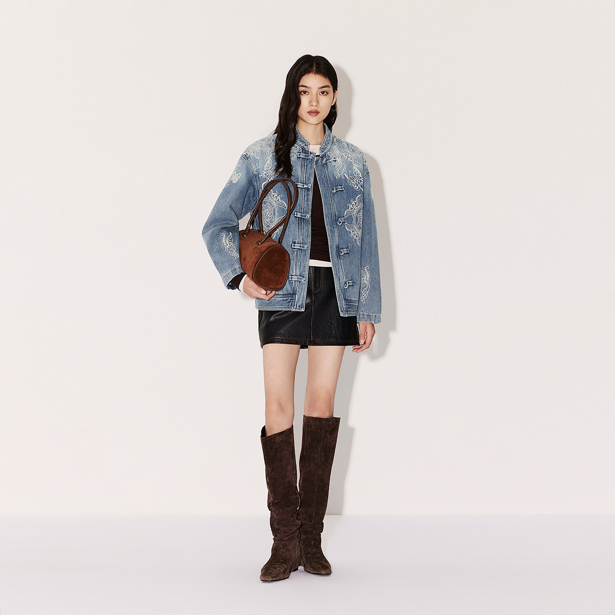 OCHIRLY欧时力新中式盘扣绣花重磅牛仔棉服外套新年26春