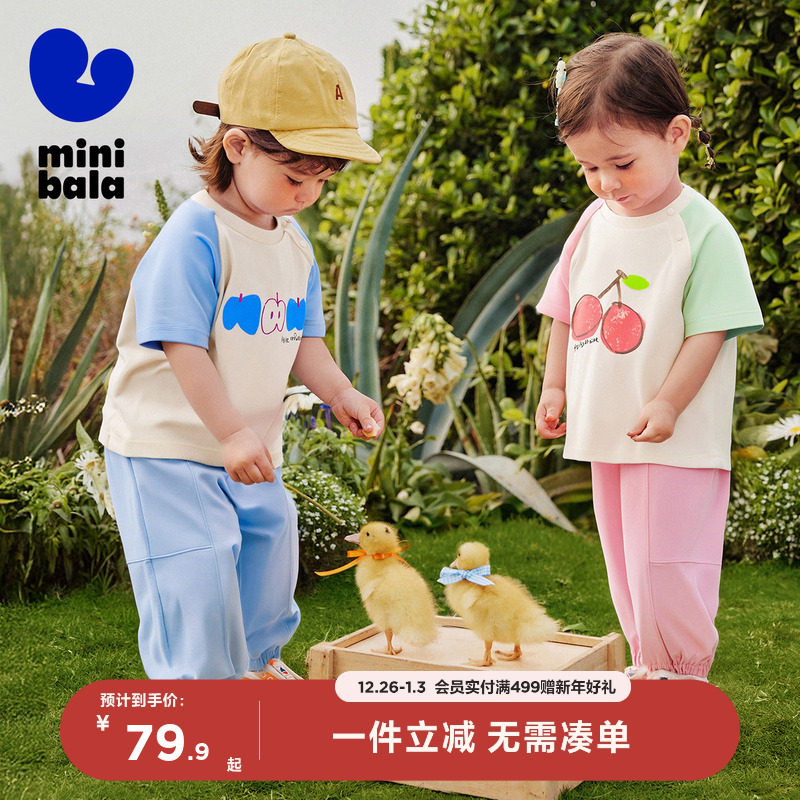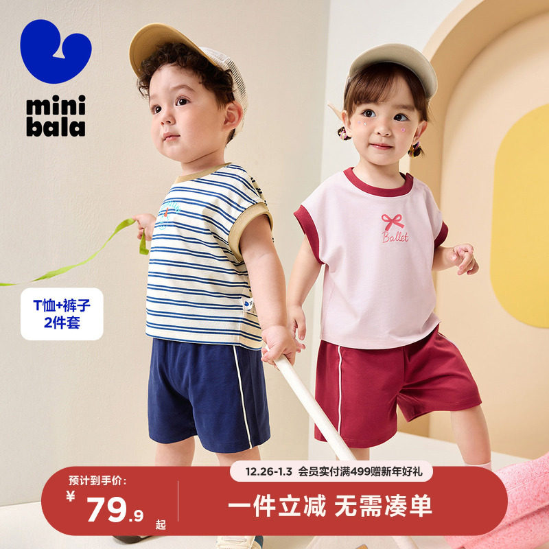 [凉感抑菌]迷你巴拉巴拉短袖套装男女童婴儿衣服宝宝t恤短裤夏季