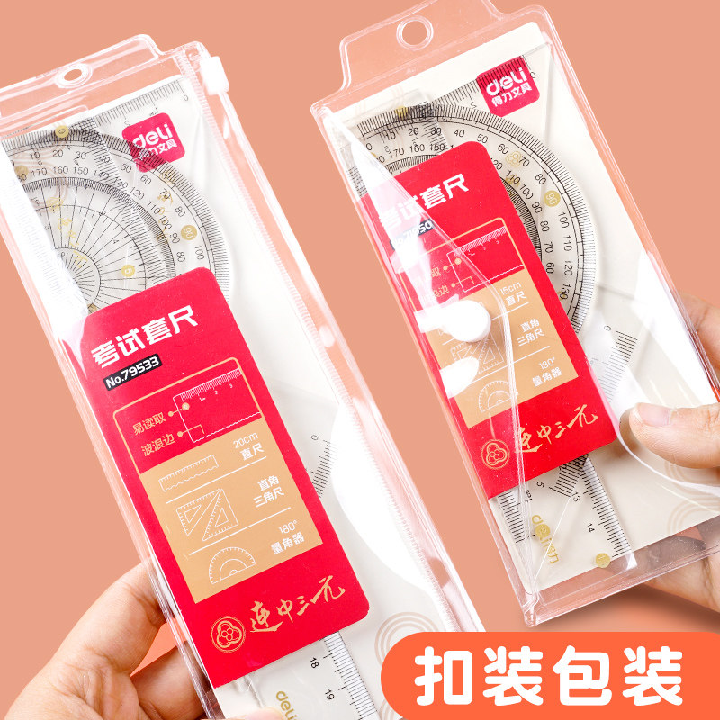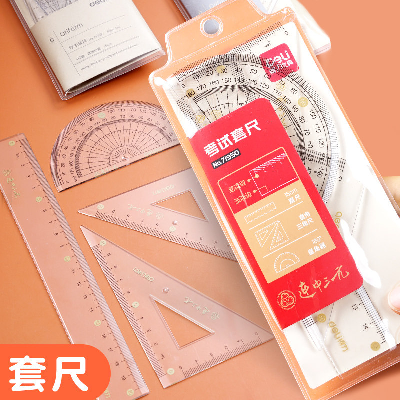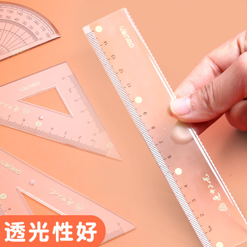得力尺子三角尺学生小学生文具套装多功能测量绘图三角板板量角器四件套透明亚克力材质考20试多规格几何工具