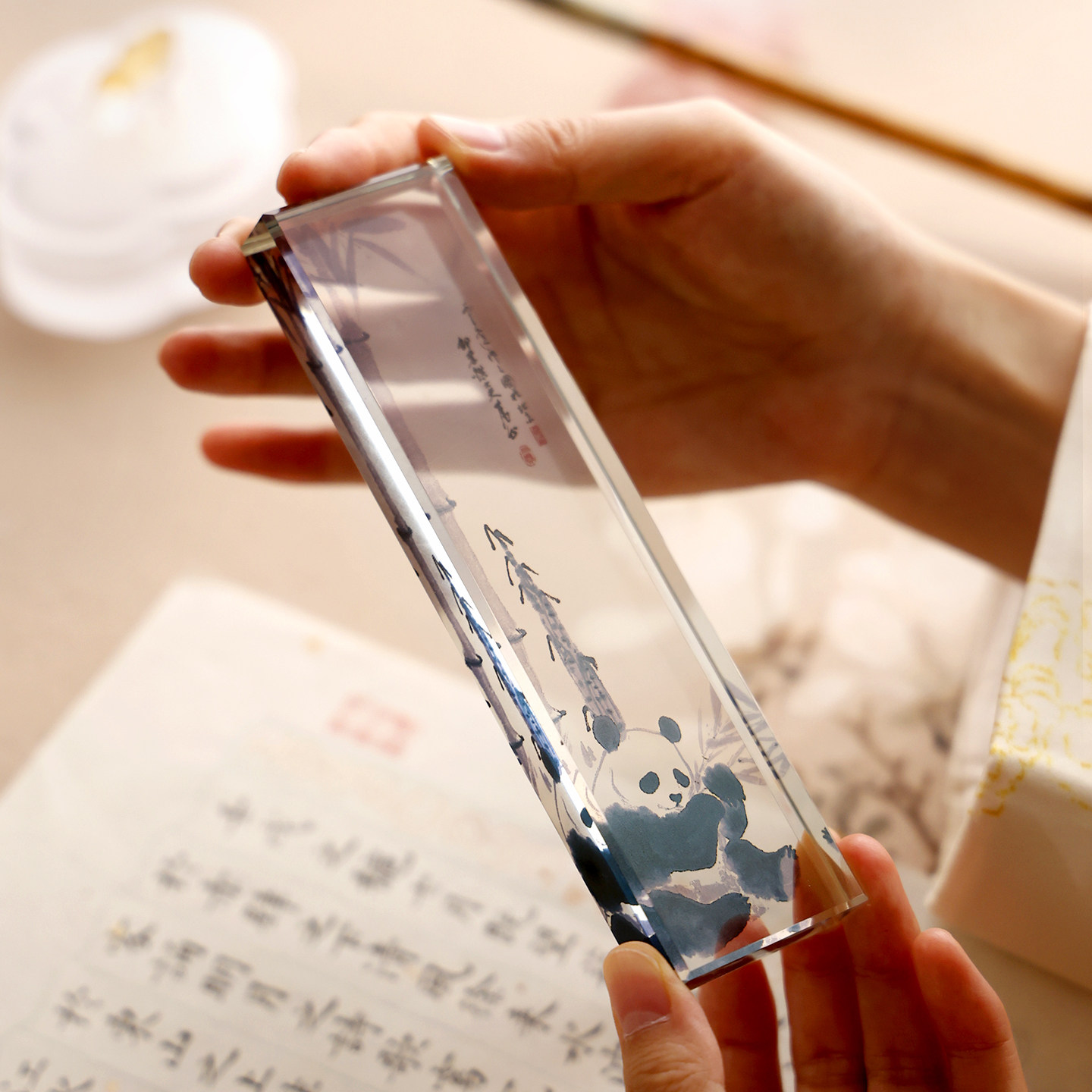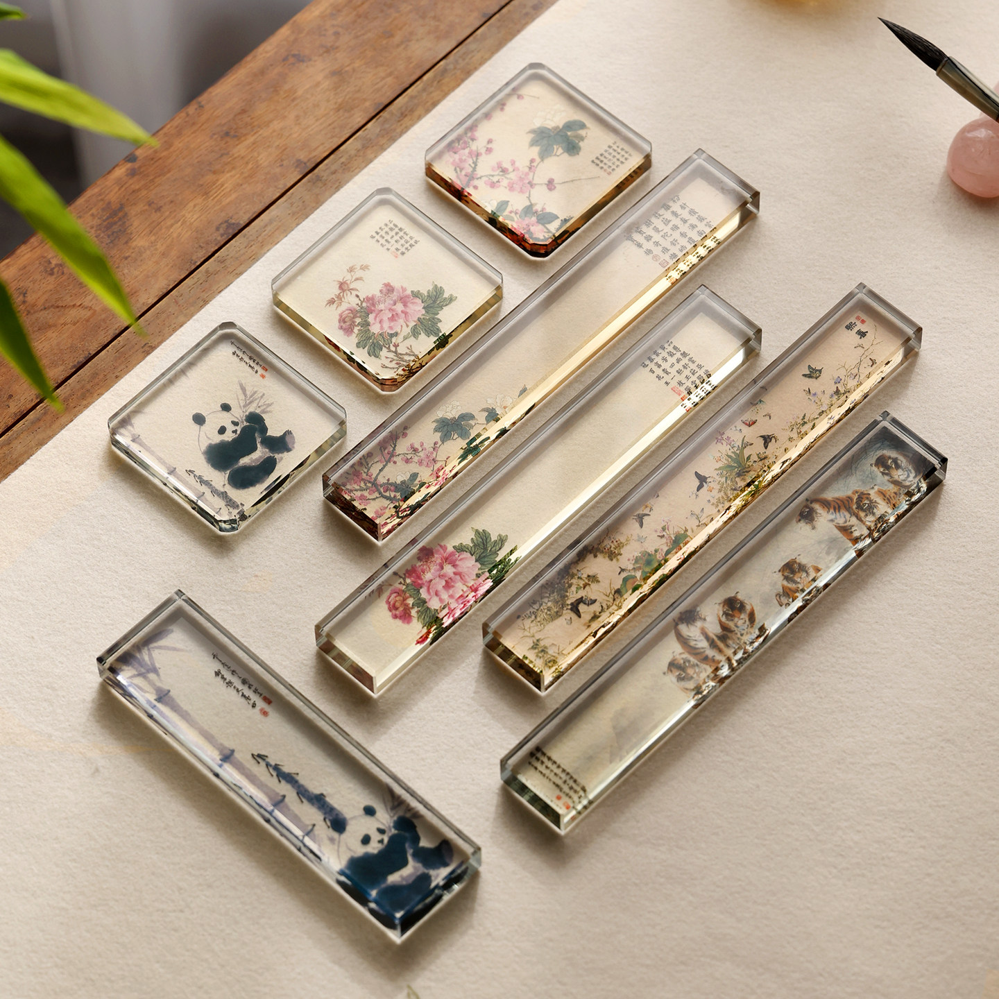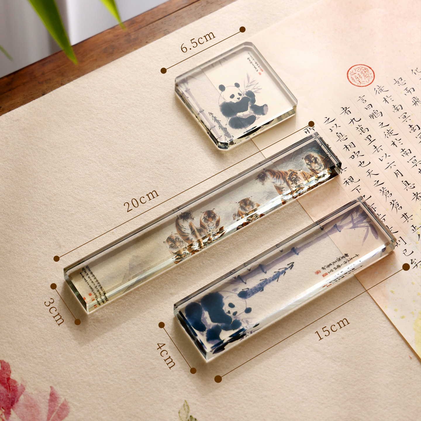 水晶玻璃镇纸镇尺毛笔字书法专用压纸压书神器琉璃镇纸尺文房四宝摆件高档压条笔搁国风书法镇尺
