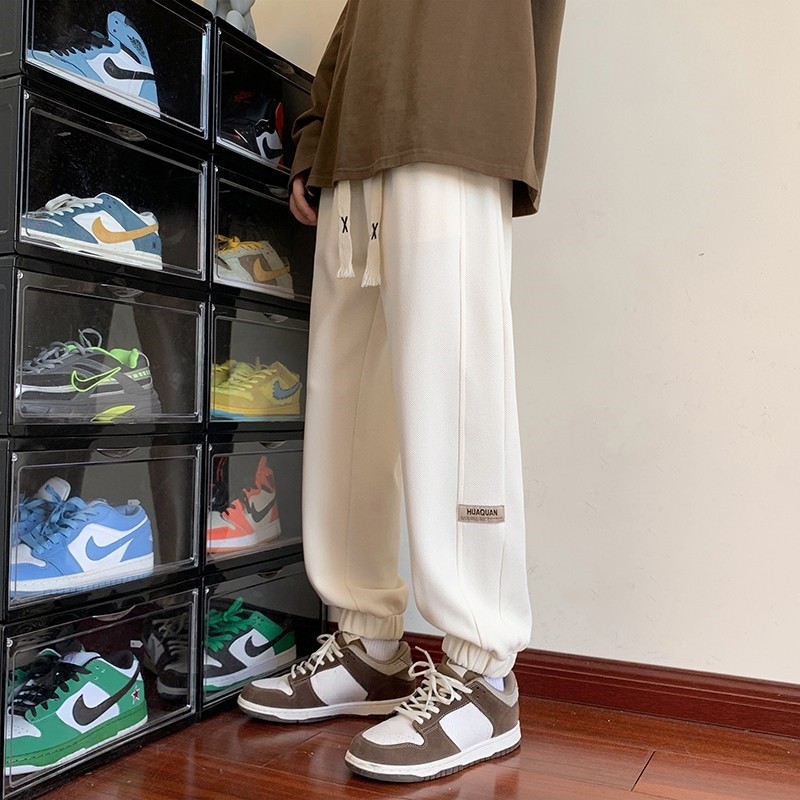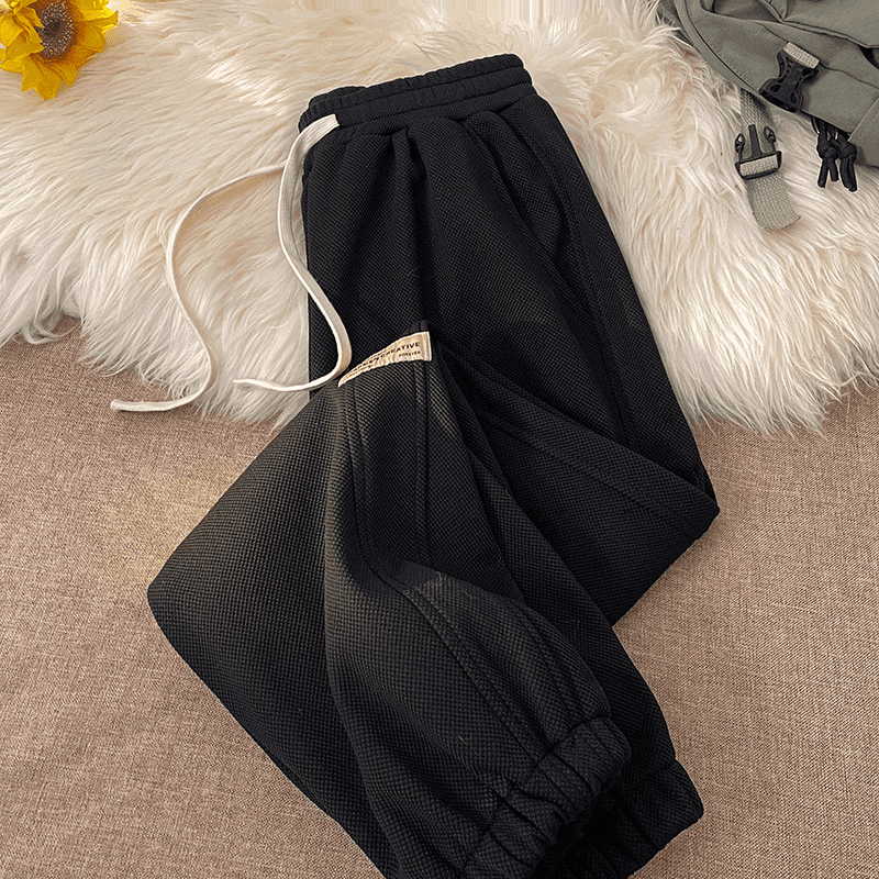 华夫格裤子男宽松春秋卫裤2025男生长裤青少年束脚冬季运动裤加绒