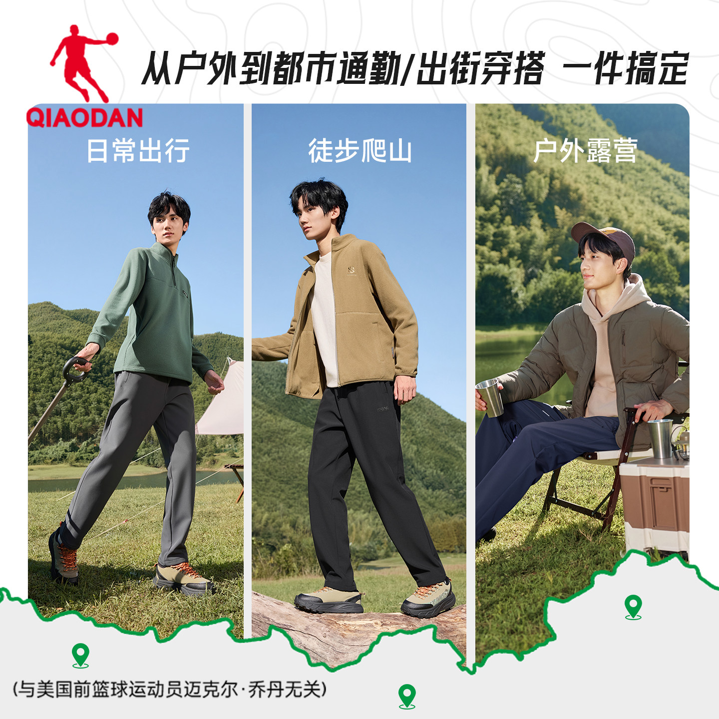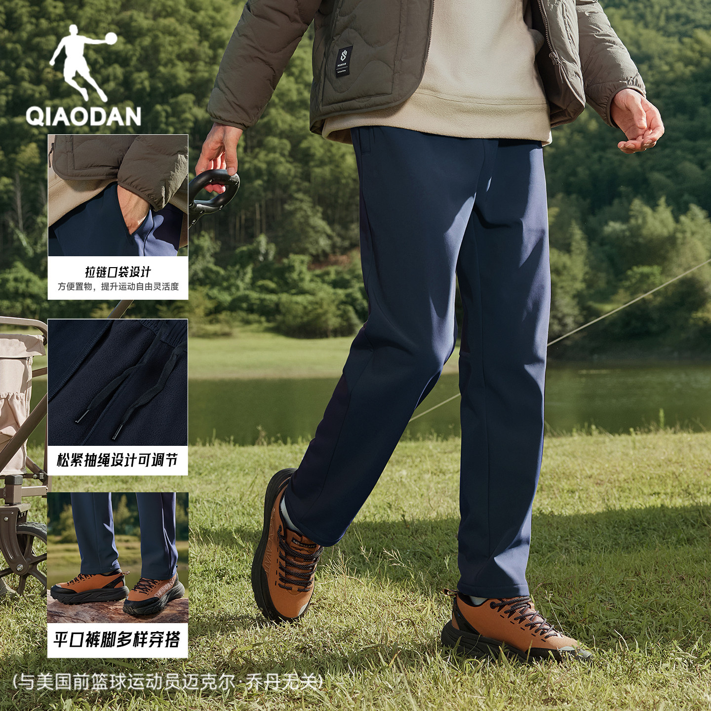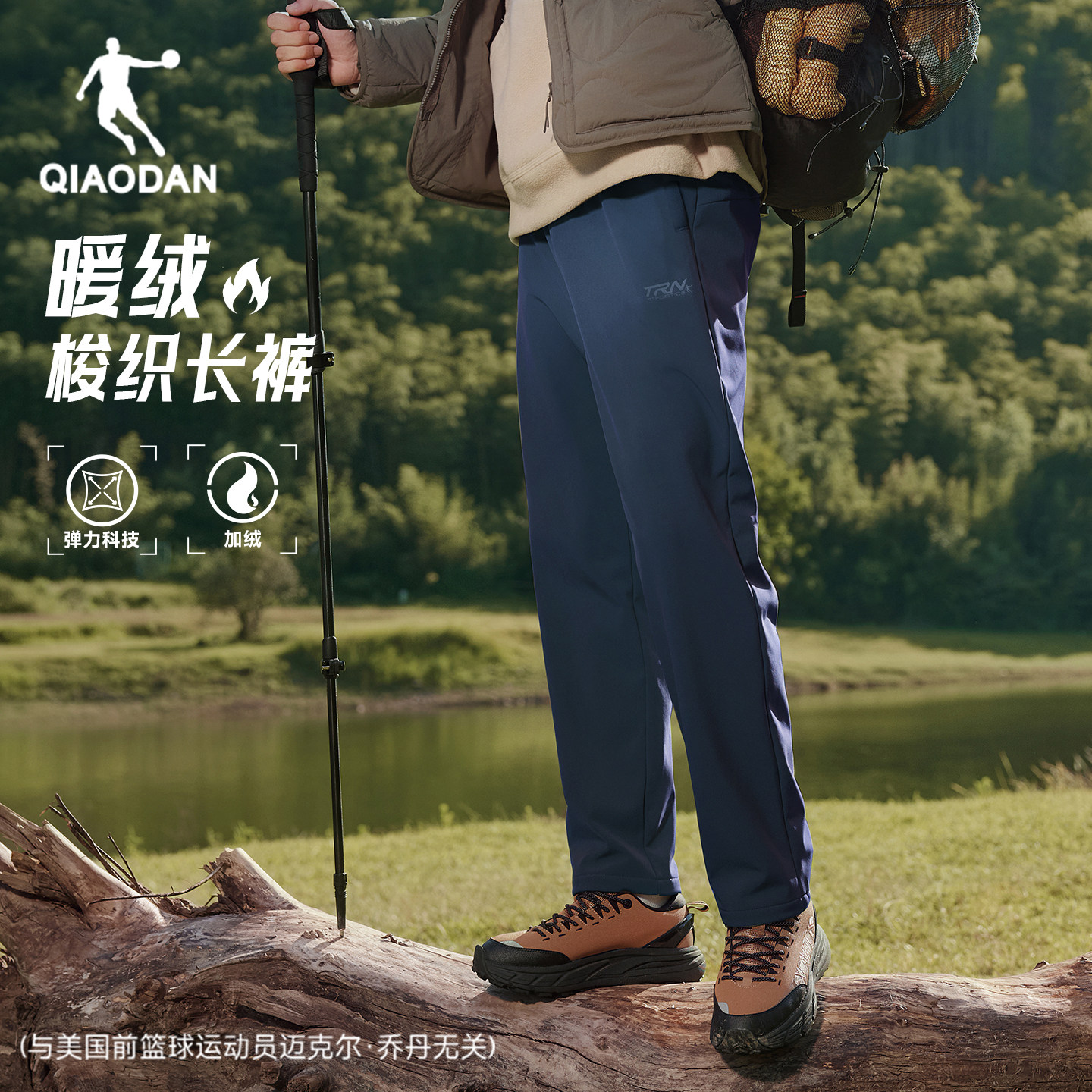 乔丹户外徒步加绒梭织长裤男生2025冬季新款保暖休闲百搭直筒裤子