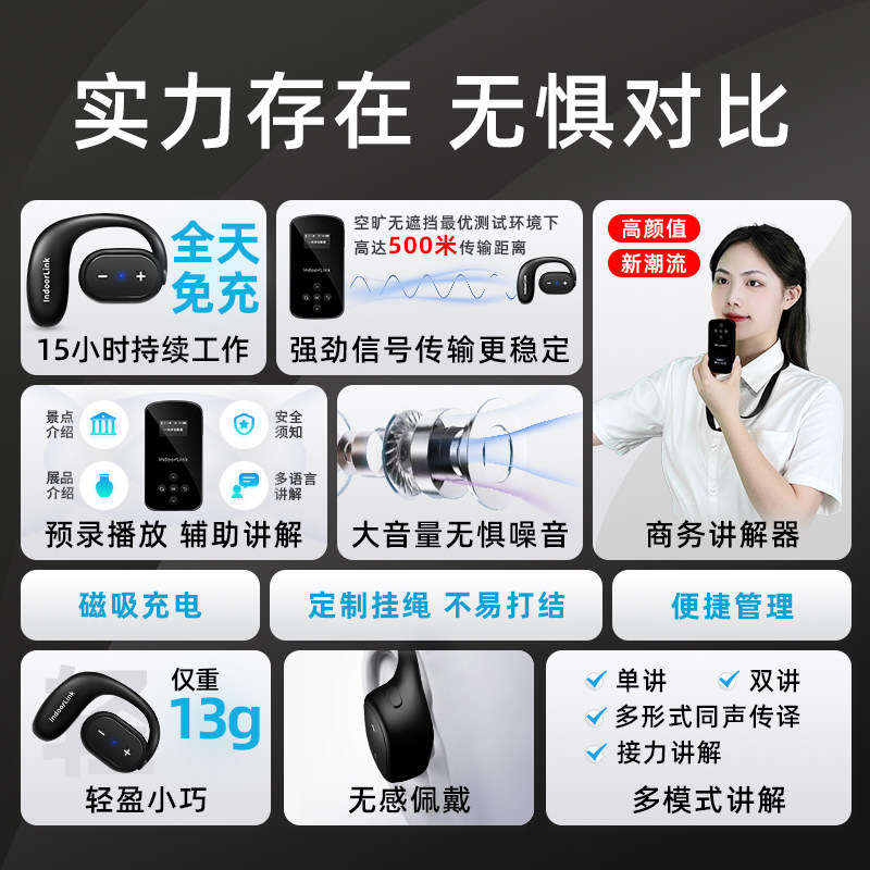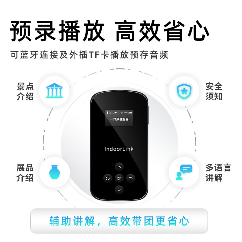 IndoorLink无线讲解器一对多政企接待参观企业商务会议培训工厂参观博物馆景区导游机耳麦耳机设备团队讲解器