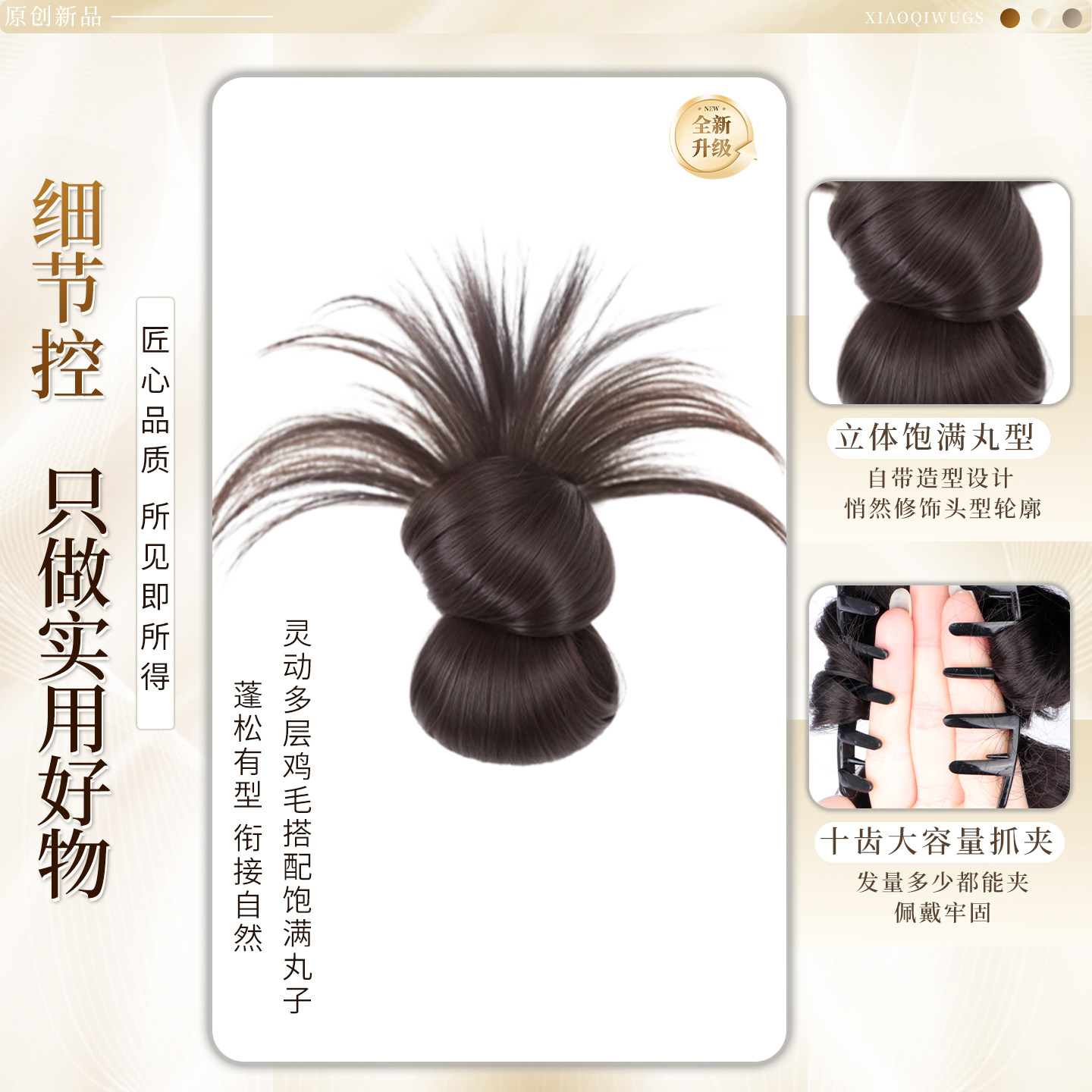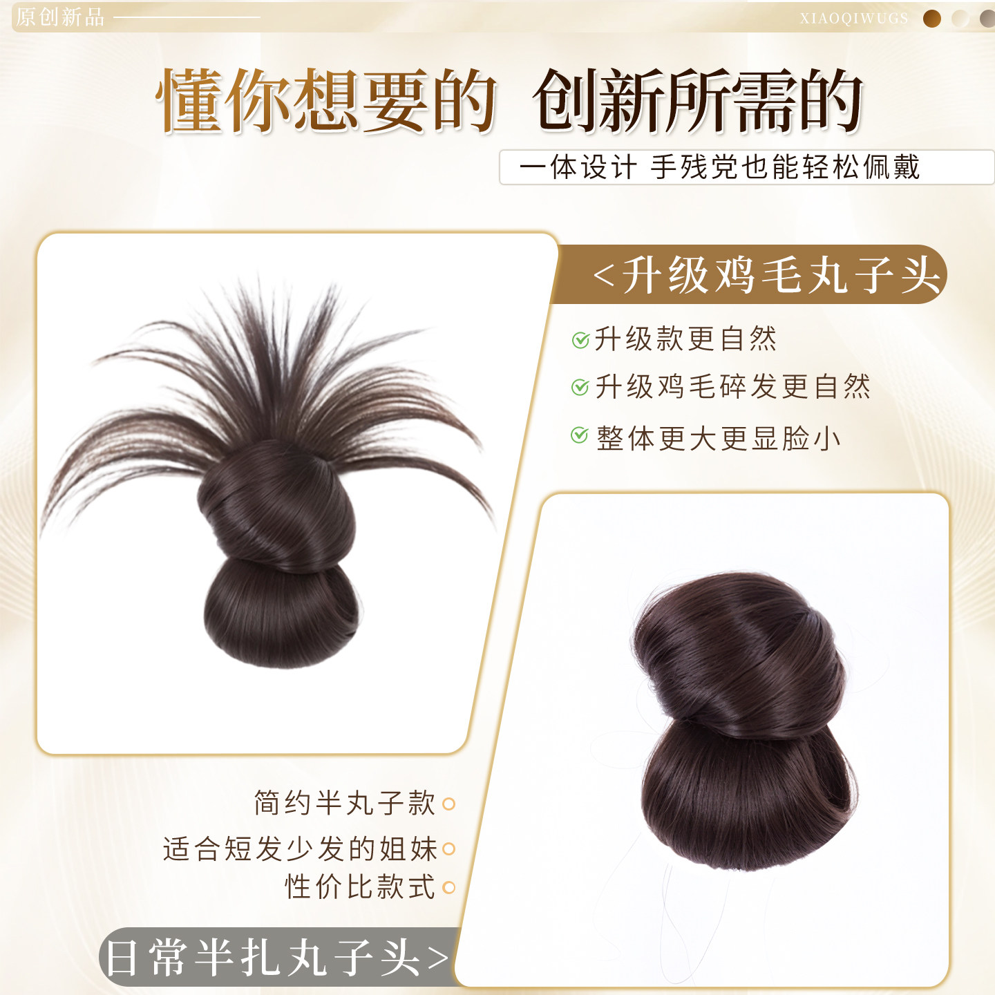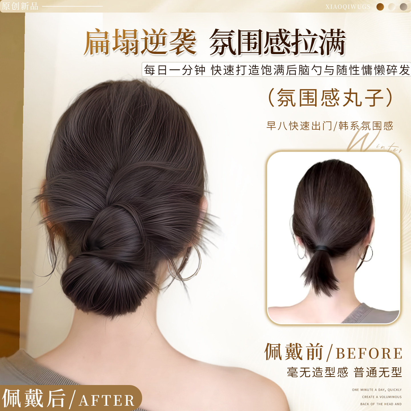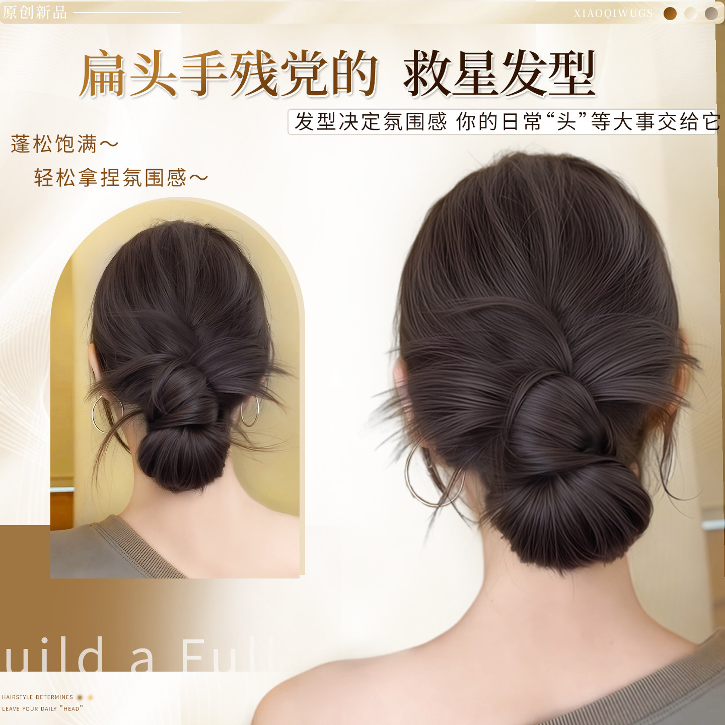 低扎丸子头假发鸡毛头抓夹盘发发包慵懒感造型头饰自然蓬松后脑勺