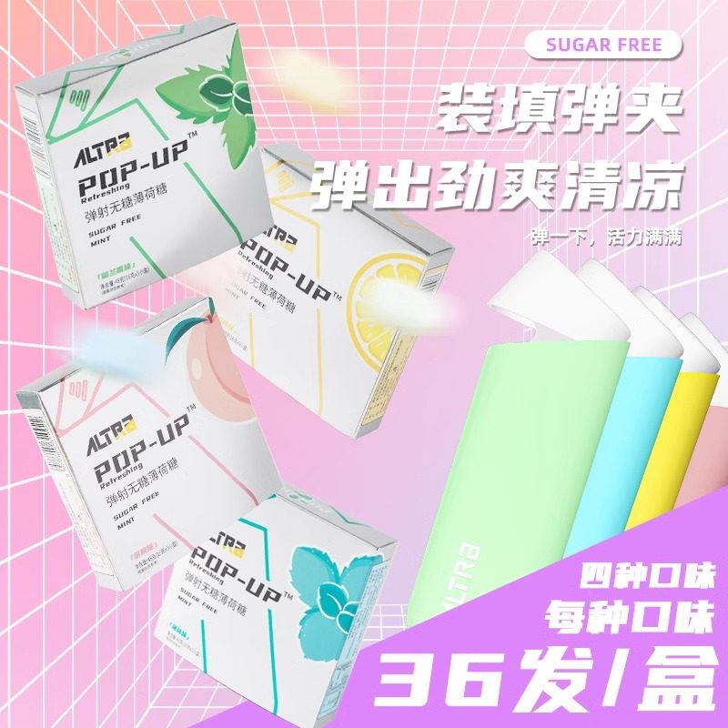 发射!!弹射薄荷糖口香糖无糖匣子便携式糖果零食柠檬留兰香清新