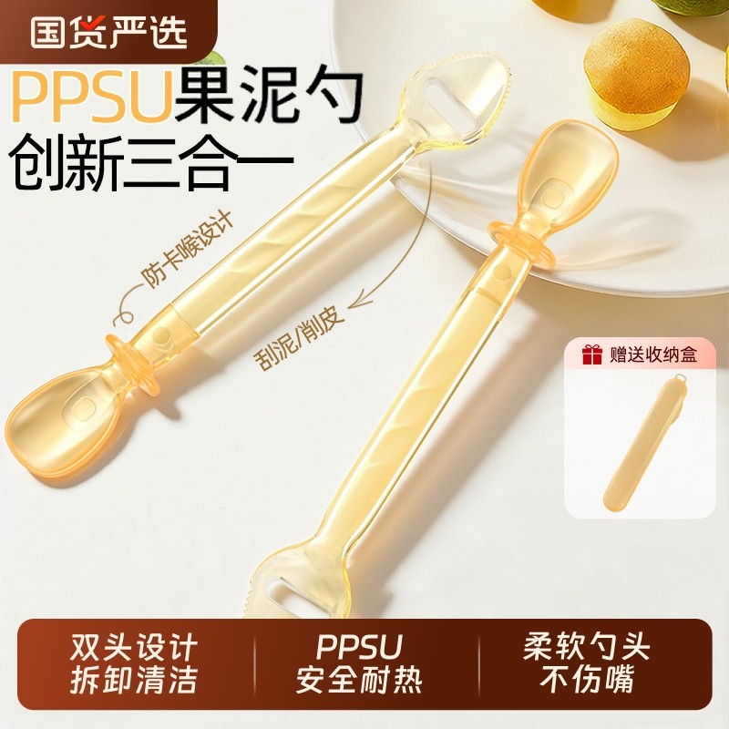 双头刮泥勺婴幼儿宝宝辅食勺子儿童挖吃水果泥勺子食物研磨器餐具