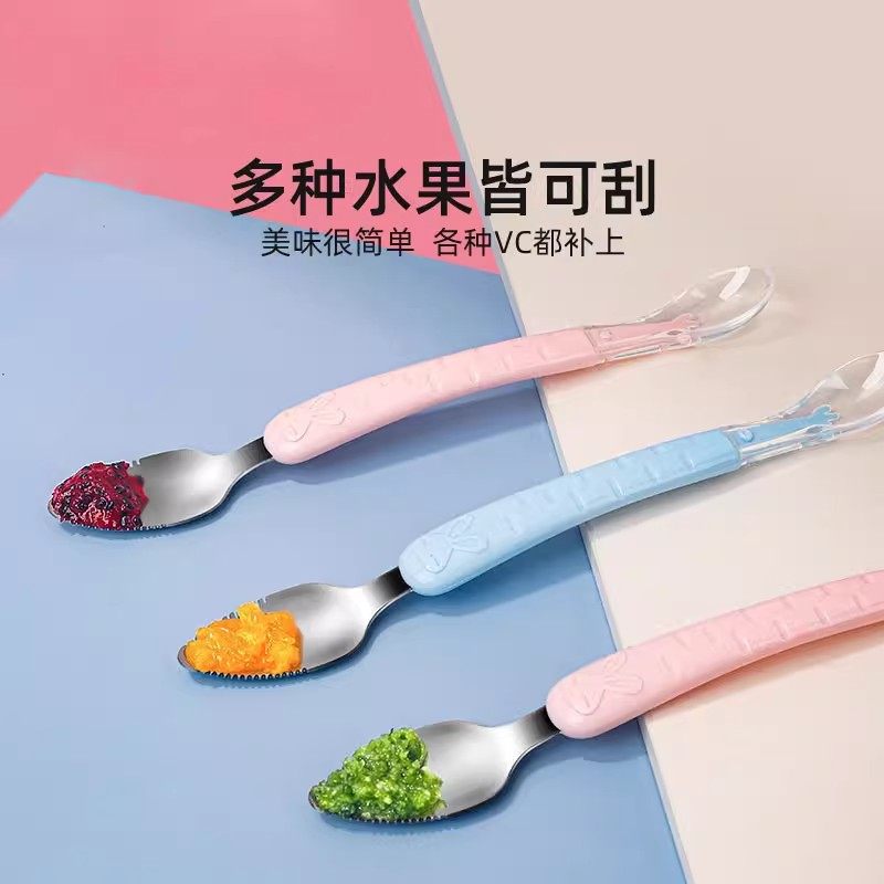 婴儿刮泥勺宝宝辅食工具辅食勺不锈钢硅胶软果泥勺子水果泥神双头