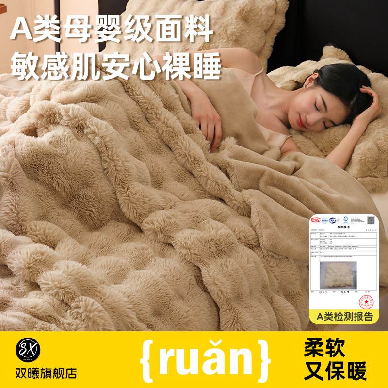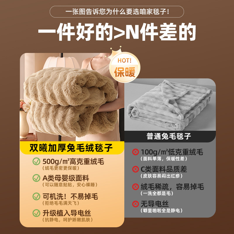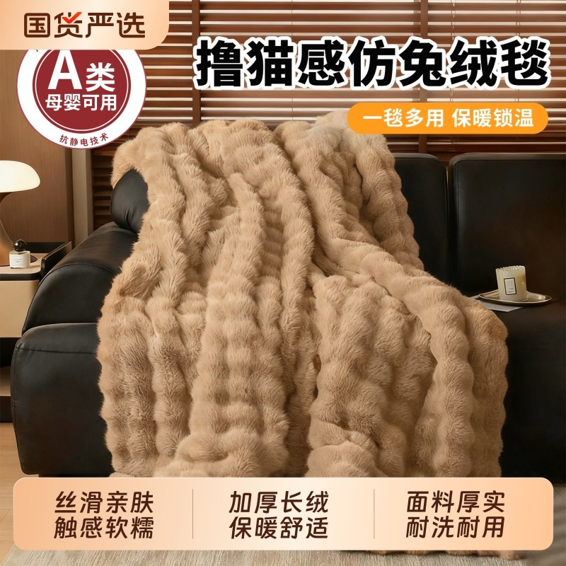 毛毯仿兔绒冬季加厚毛绒盖毯办公室午睡毯学生沙发珊瑚绒毯子宿舍