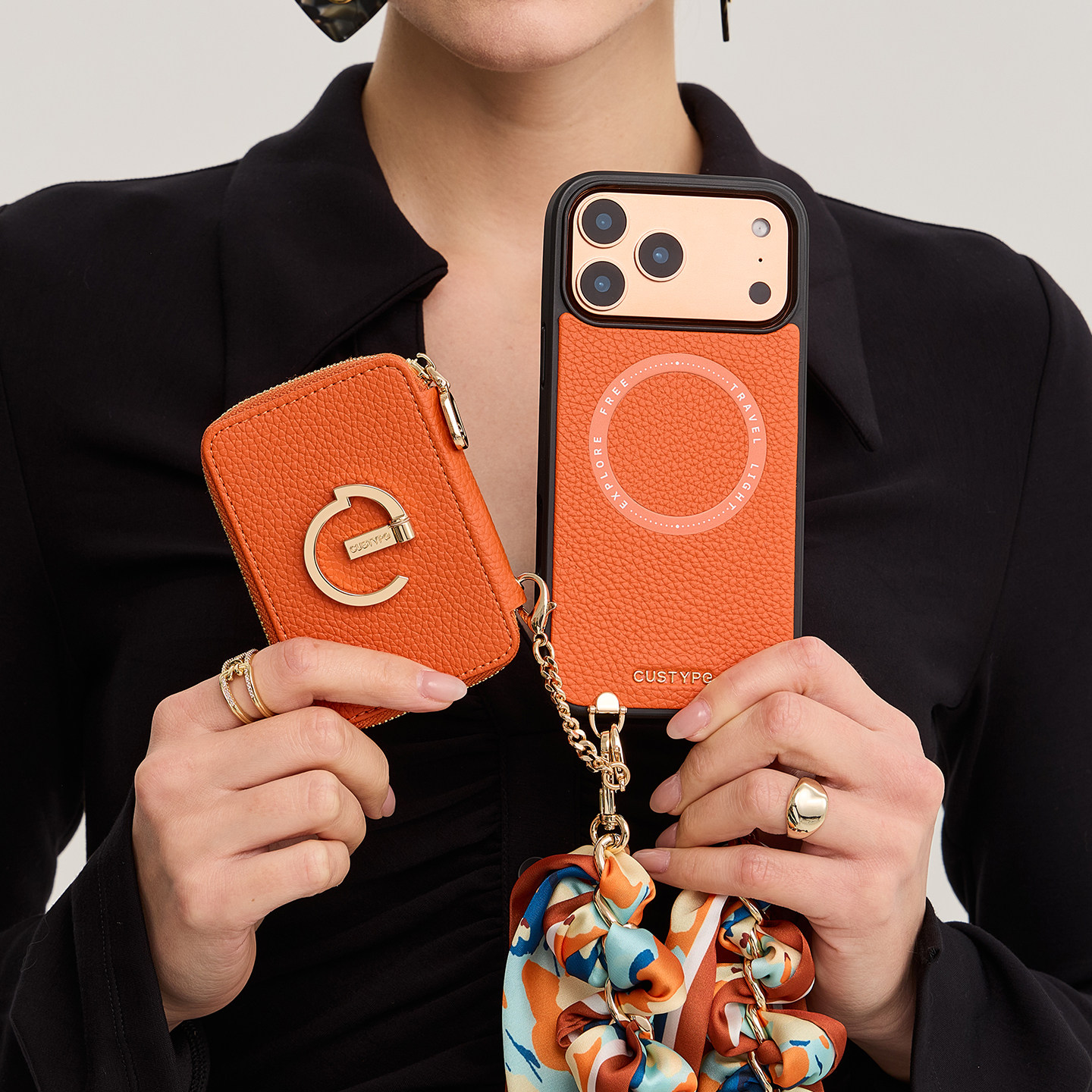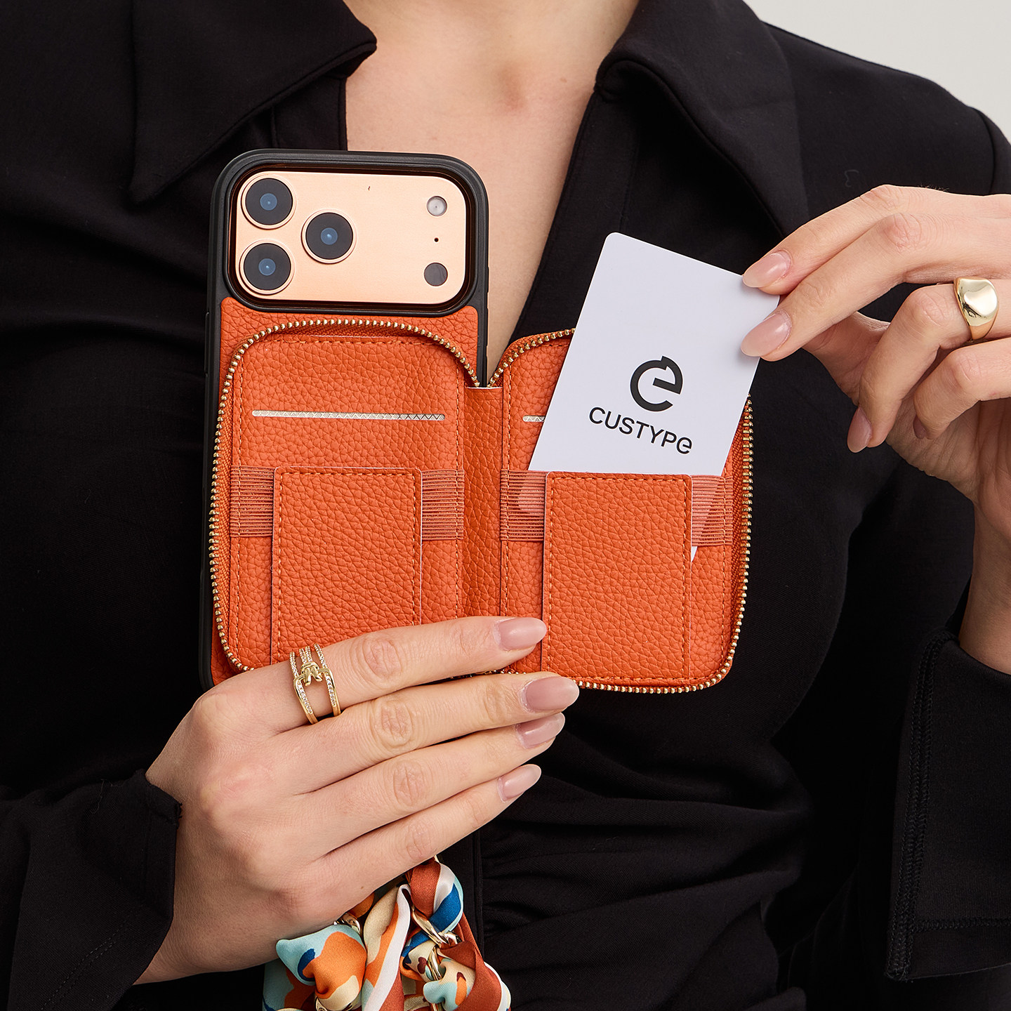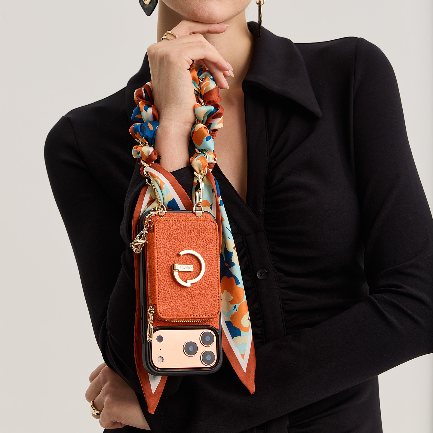 CUSTYPE适用苹果17promax手机壳16pro丝巾手腕带支架便携式防摔皮质女高级感个性轻奢iPhone15手机套14保护壳