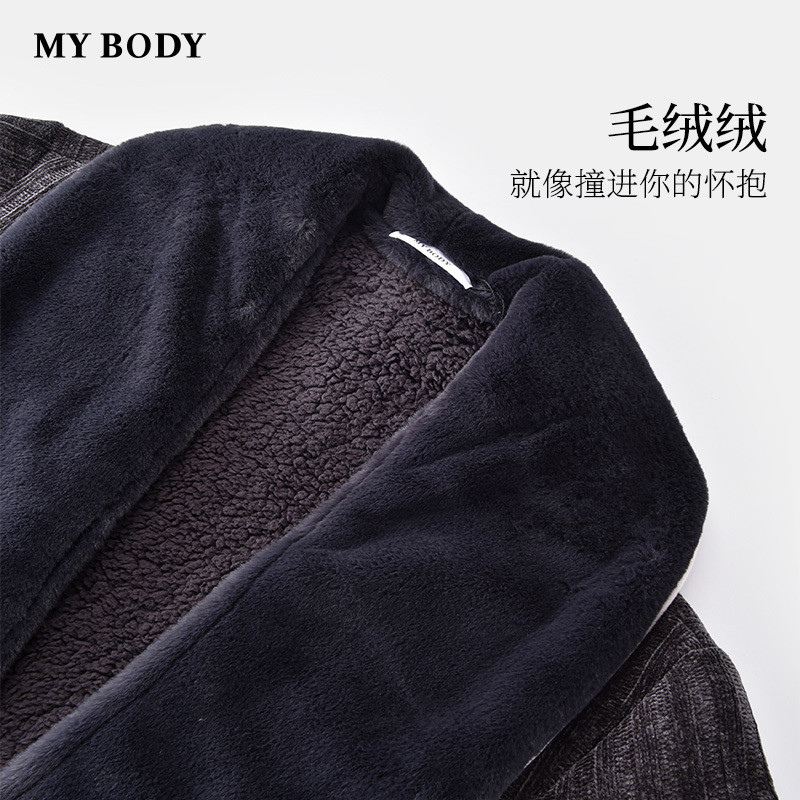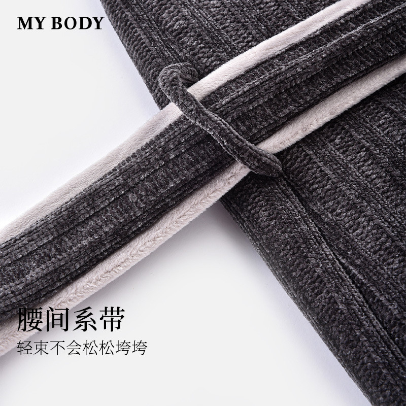 商场同款MYBODY冬季新款男士睡衣云朵雪尼尔绒时尚浴袍系带长睡袍