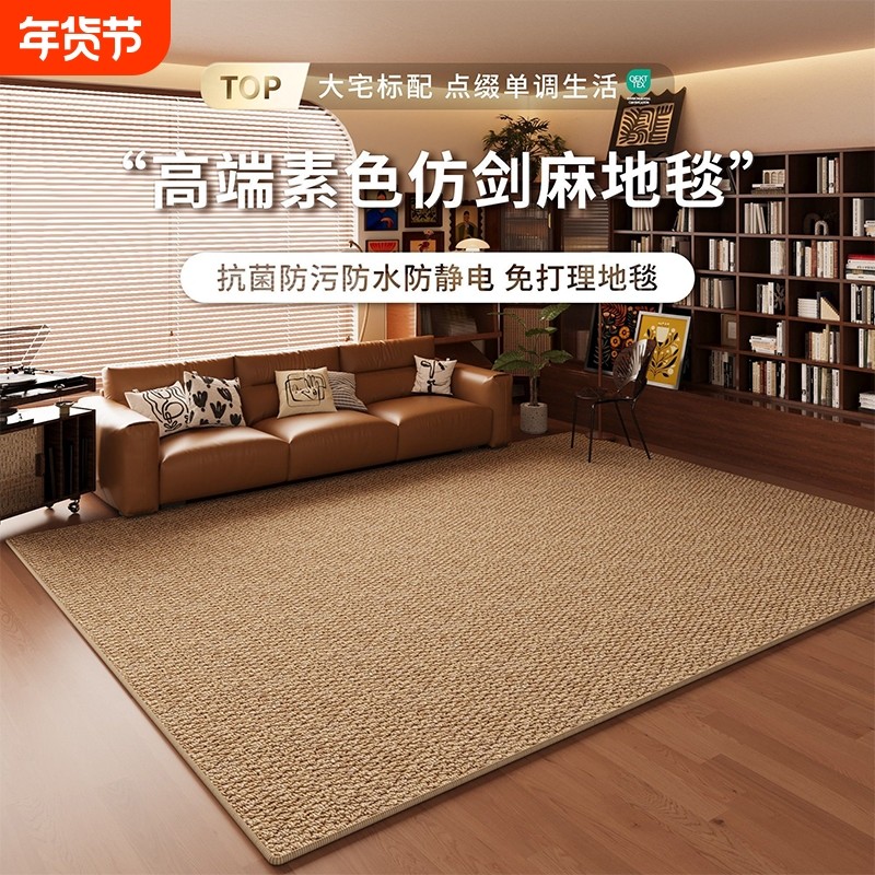 仿剑麻地毯客厅耐磨仿猫爪免洗侘寂中古风地垫奶油高级卧室床边毯