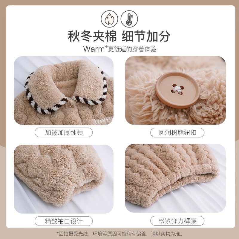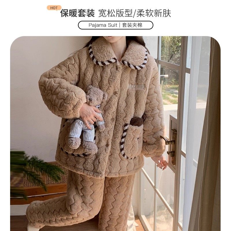 2025新款秋冬季天女士三层夹棉睡衣大码套装珊瑚绒加绒加厚家居服