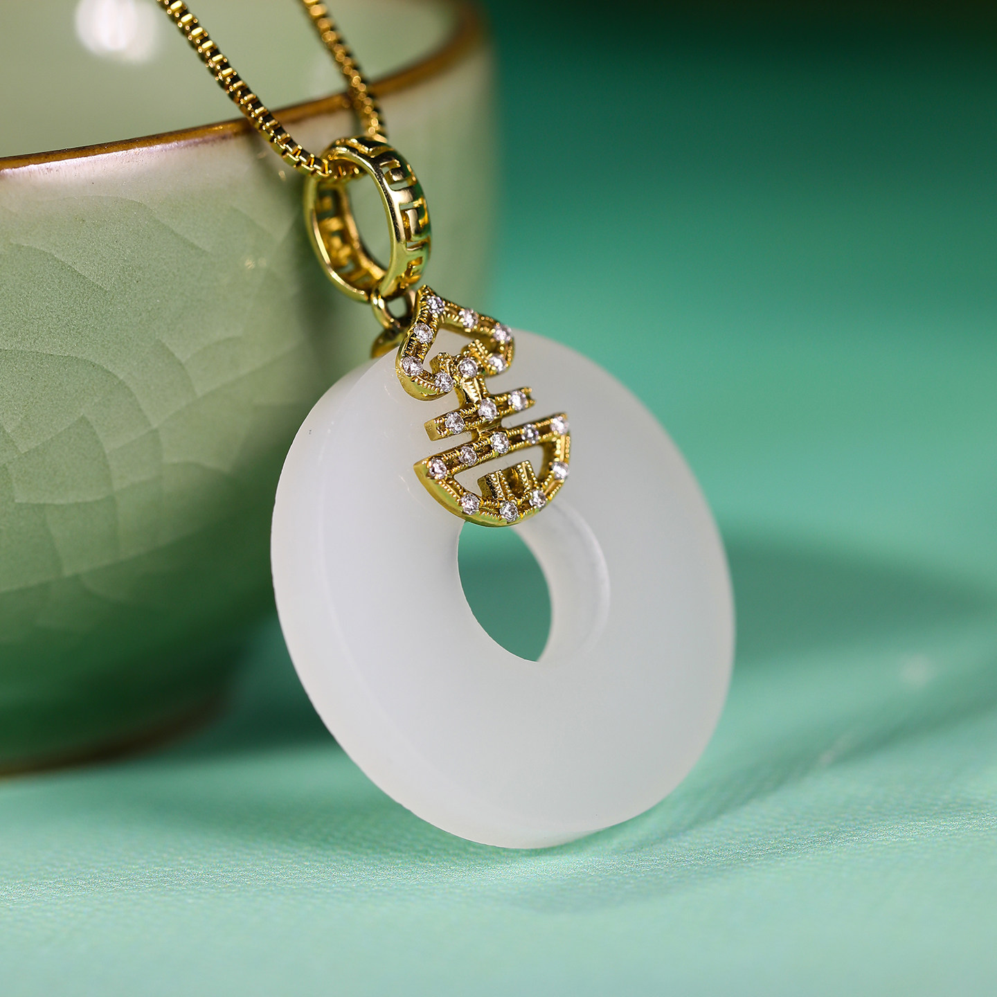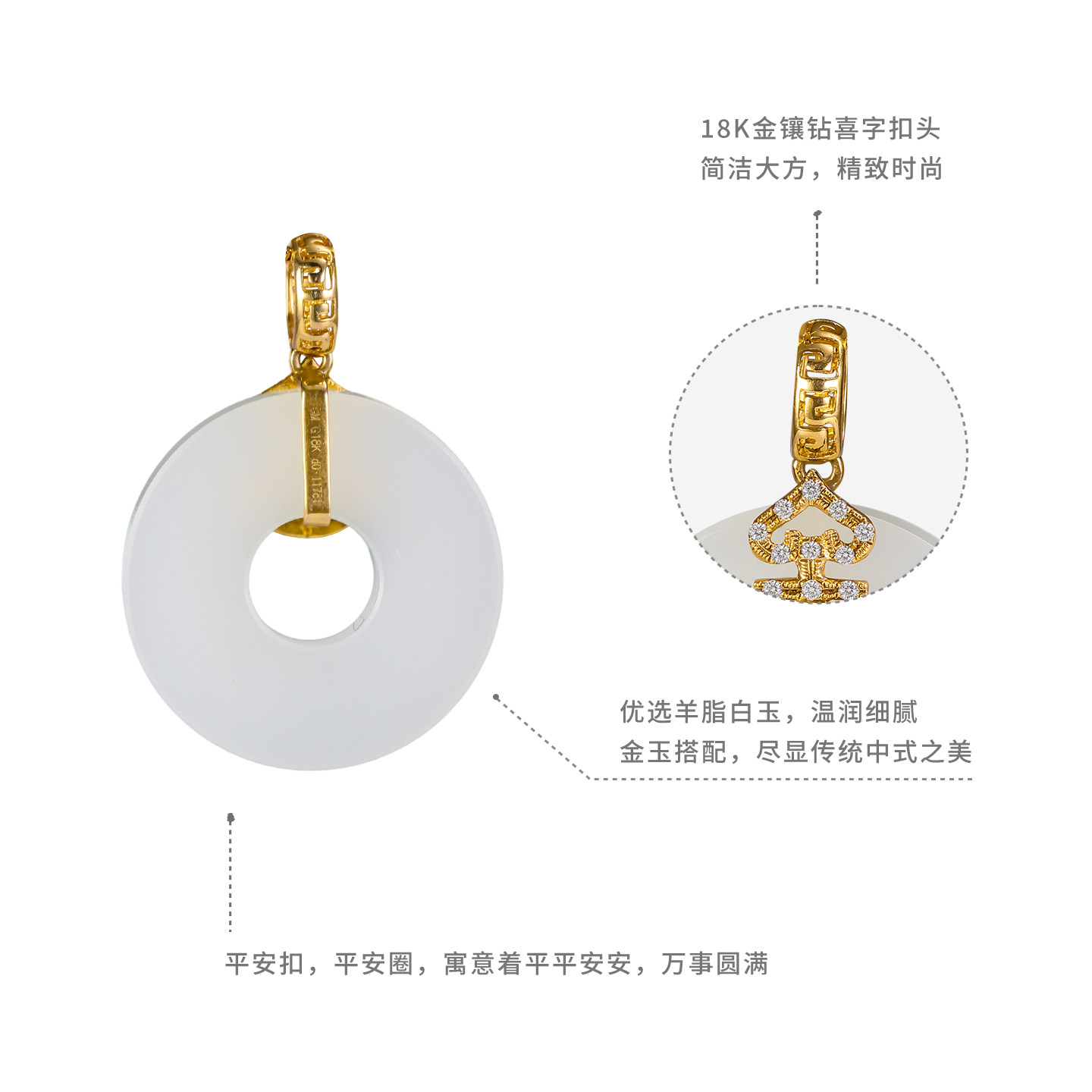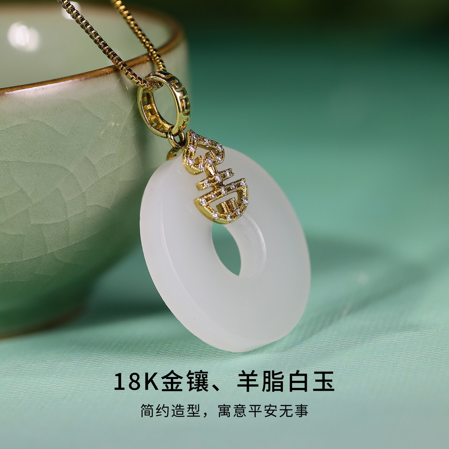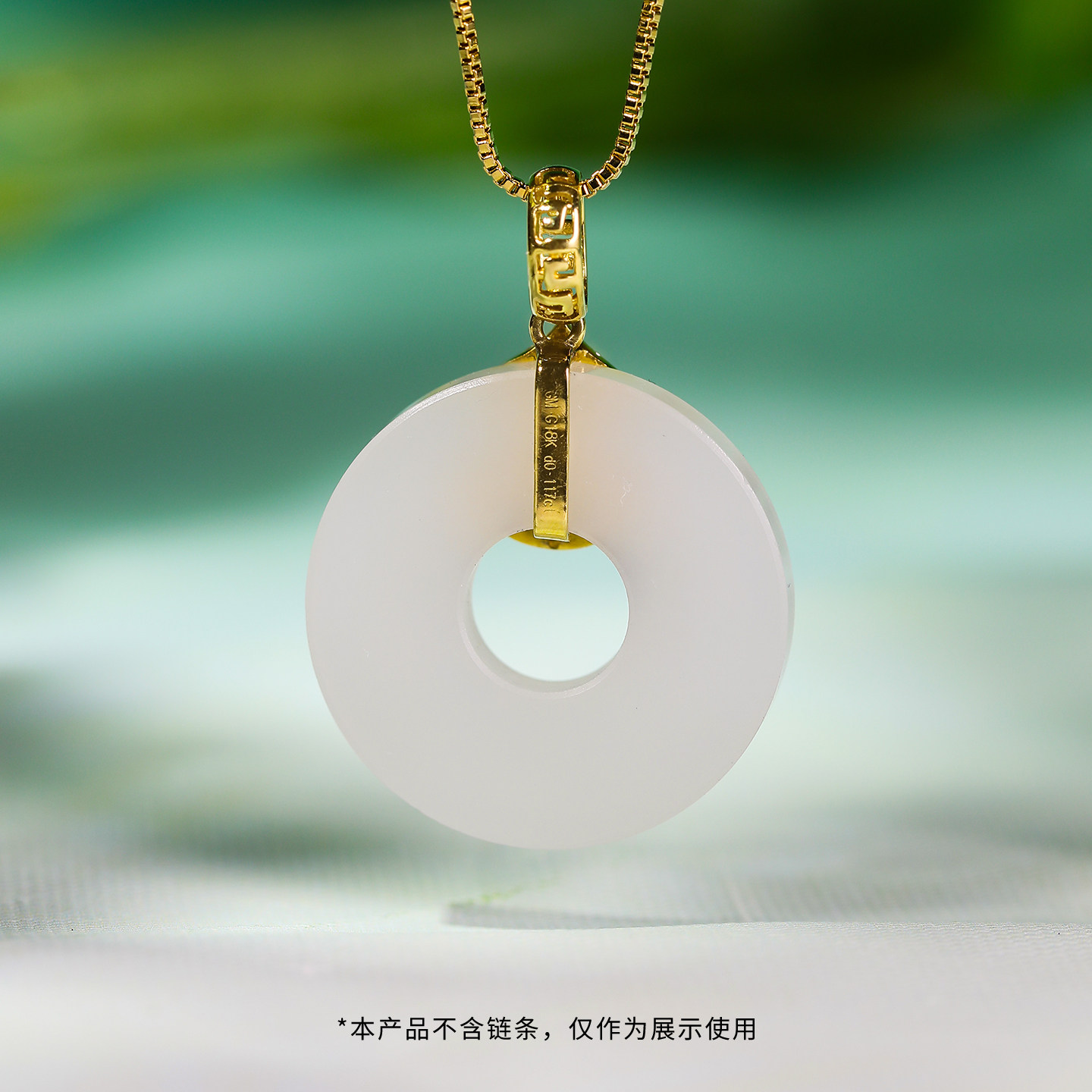 和合玉器和田玉18K金镶玉镶钻羊脂白玉平安扣挂件玉石项链吊坠女
