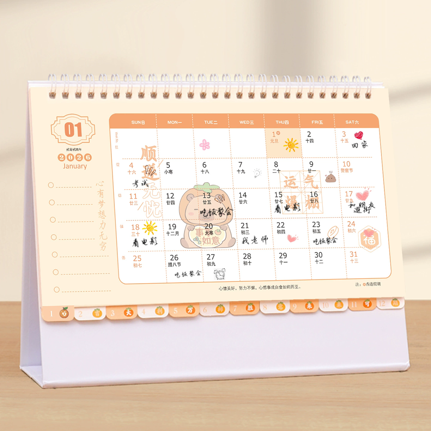 季左2026年韩式台历日历马年新款定制订制小卡月历桌面摆件网红卡通高颜值办公台历卡通可爱
