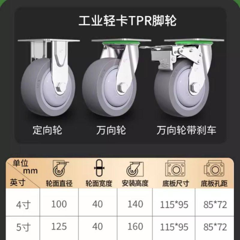 防缠绕TPR静音橡胶万向轮服装厂专用万向轮推车轮子板车轮子大全