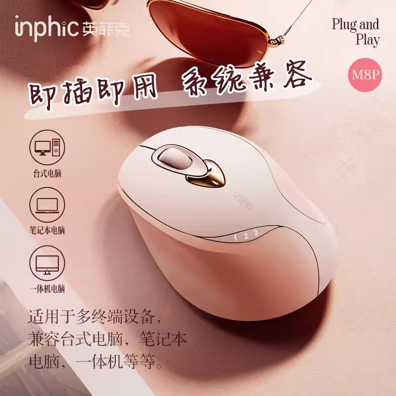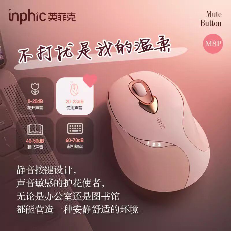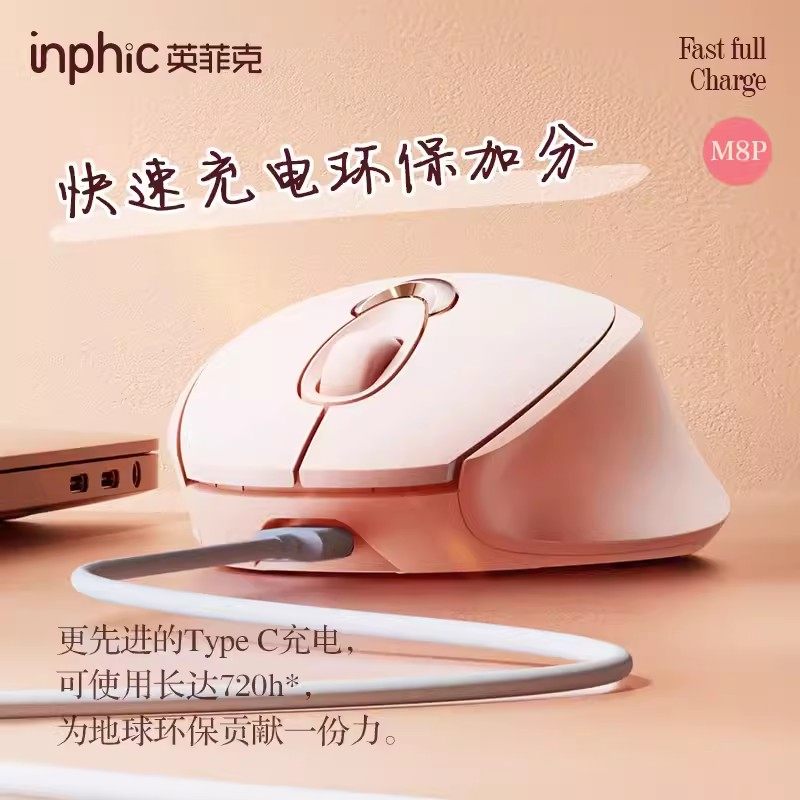 英菲克M8P无线鼠标女生办公家用充电静音适用联想笔记本小米电脑