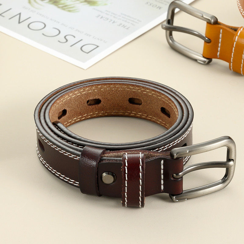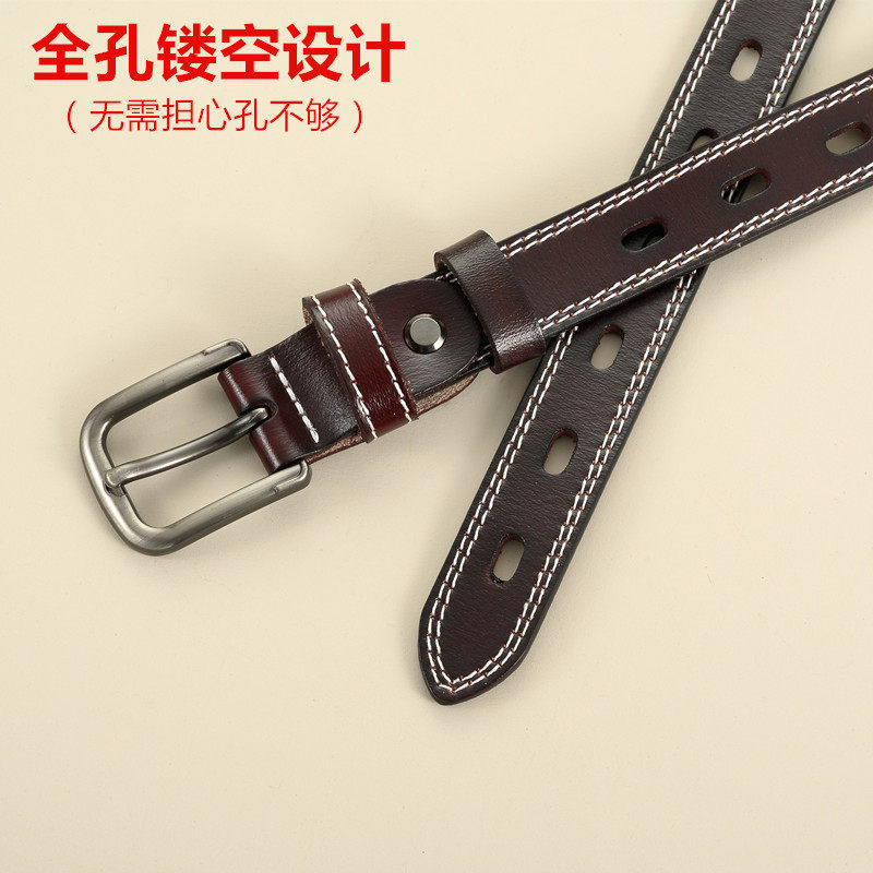 海澜之家男士针扣皮带真牛皮腰带年轻人商务百搭新款西装裤带正品