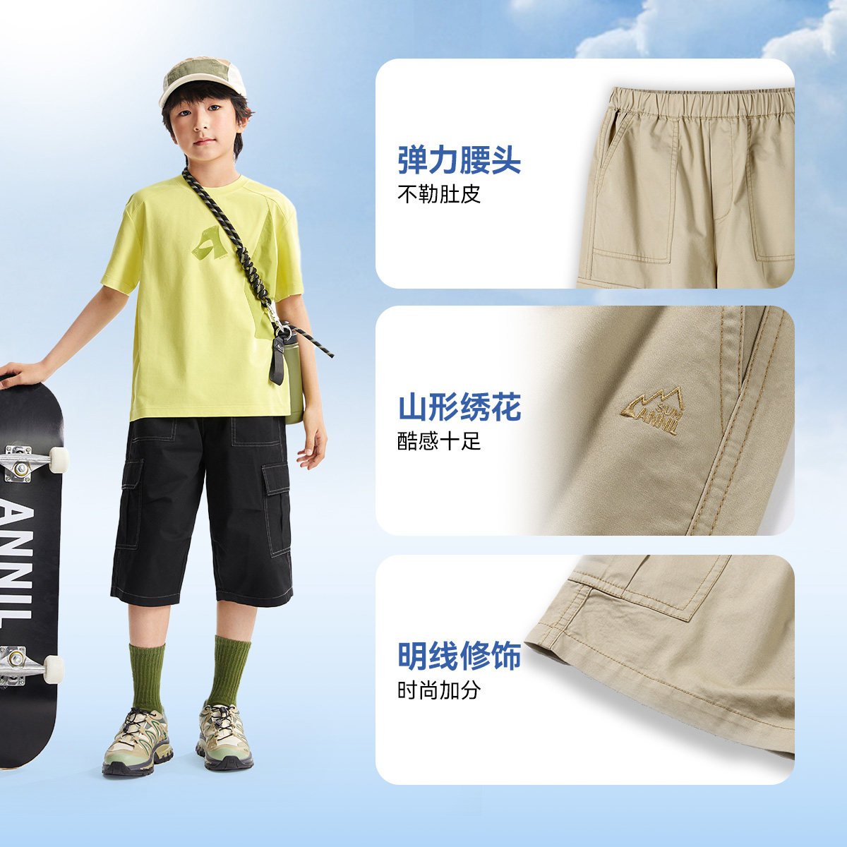 安奈儿童装男童裤子七分裤夏新款纯棉工装户外时尚吸湿透气