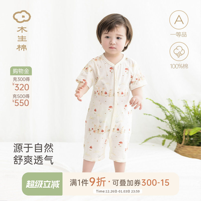 木生棉女宝宝短袖连体衣夏季薄款婴儿透气睡衣服公主可爱哈衣爬服