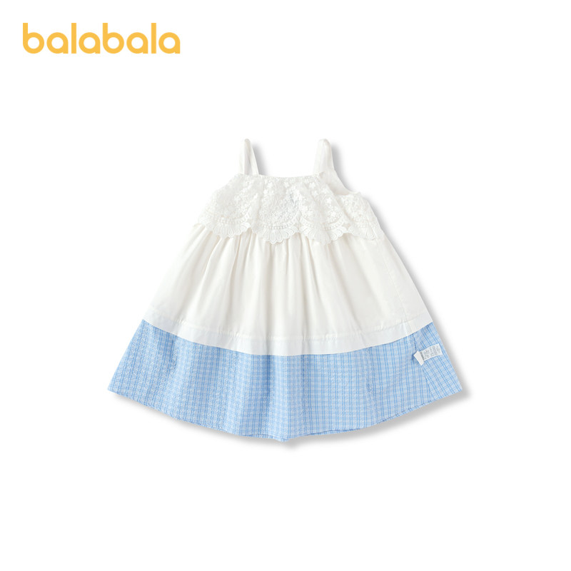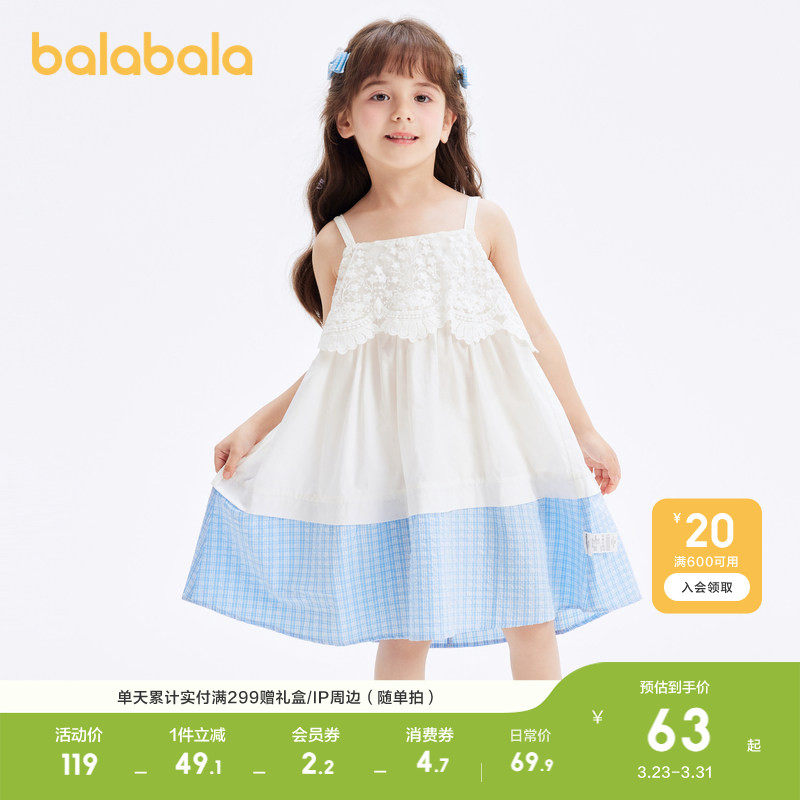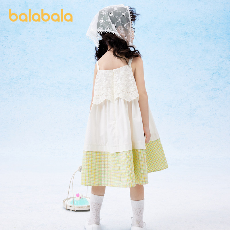 巴拉巴拉儿童裙子夏季新款女童连衣裙时尚撞色蕾丝格纹吊带裙