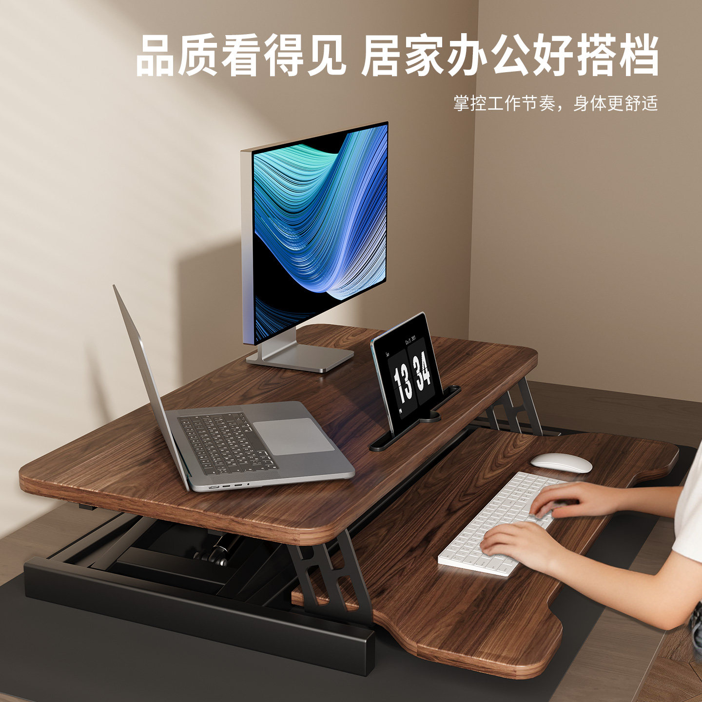 站立式电脑工作台笔记本台式支架气动可调节升降桌显示器屏增高架桌面站着办公折叠桌加宽加大家用移动托架子