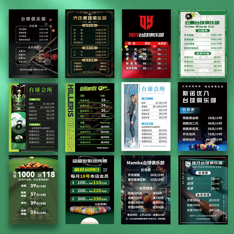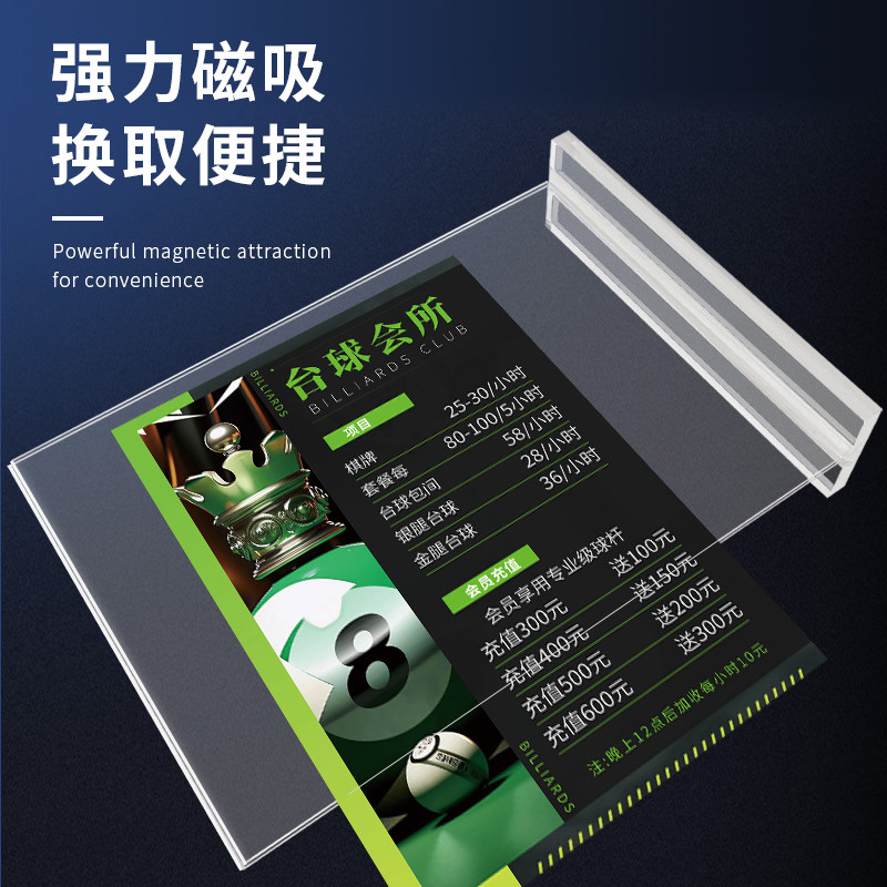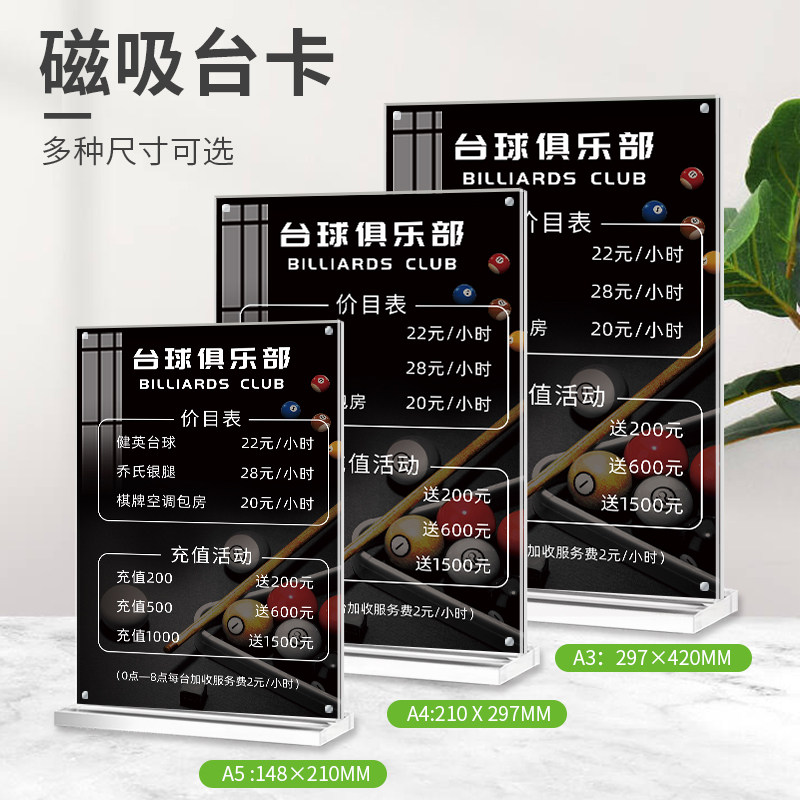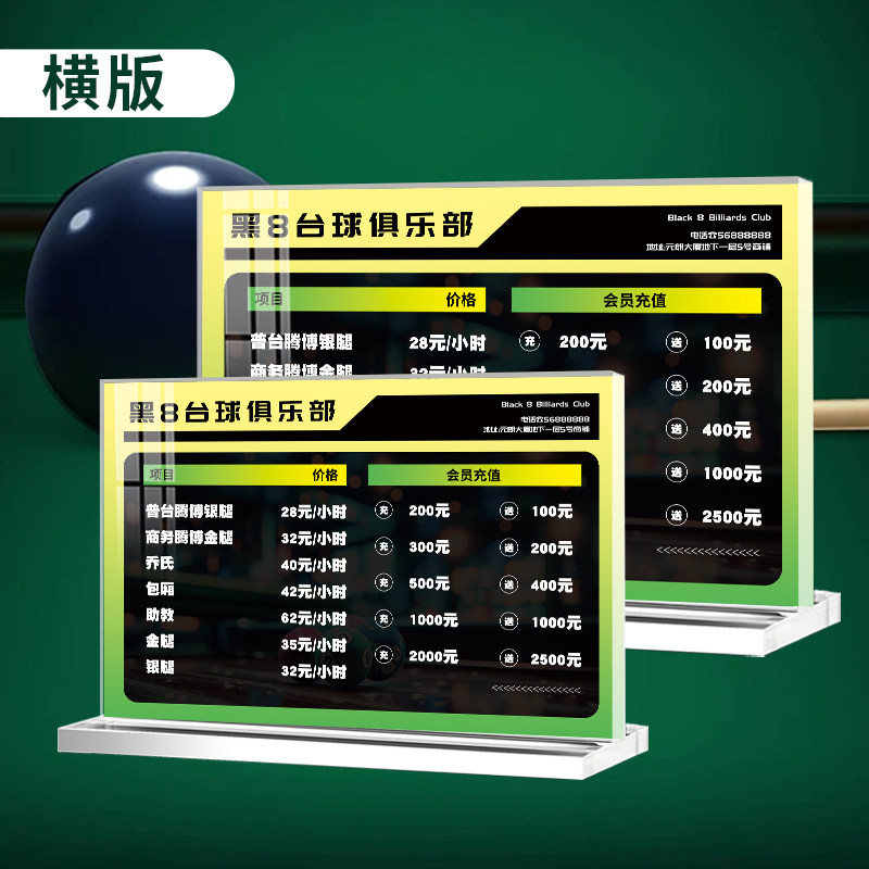 台球厅价格表展示牌台卡定制健身房口腔牙科医院美容院理发店会员充值立牌A4亚克力棋牌室价目表广告展示桌牌