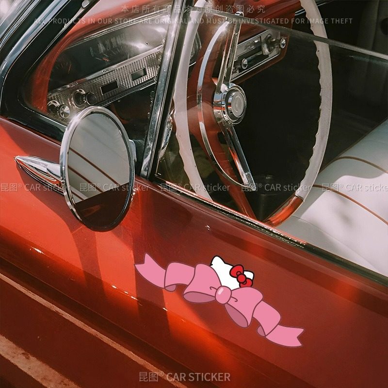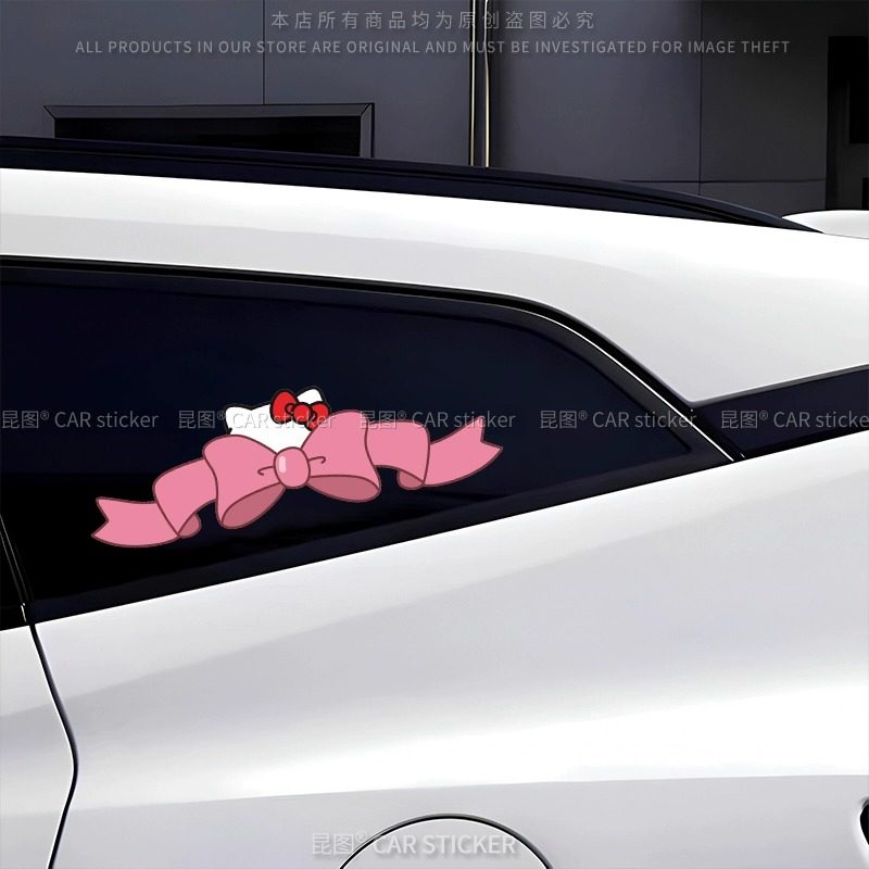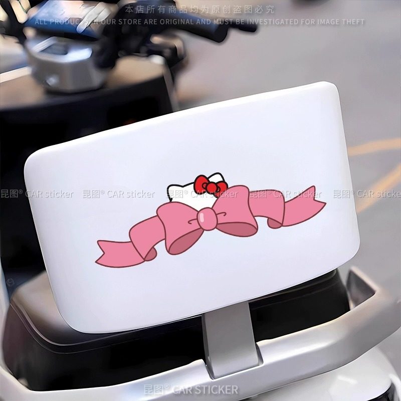 汽车贴纸KT猫蝴蝶结长条遮挡划痕装饰电动车贴卡通车尾保险杠车门