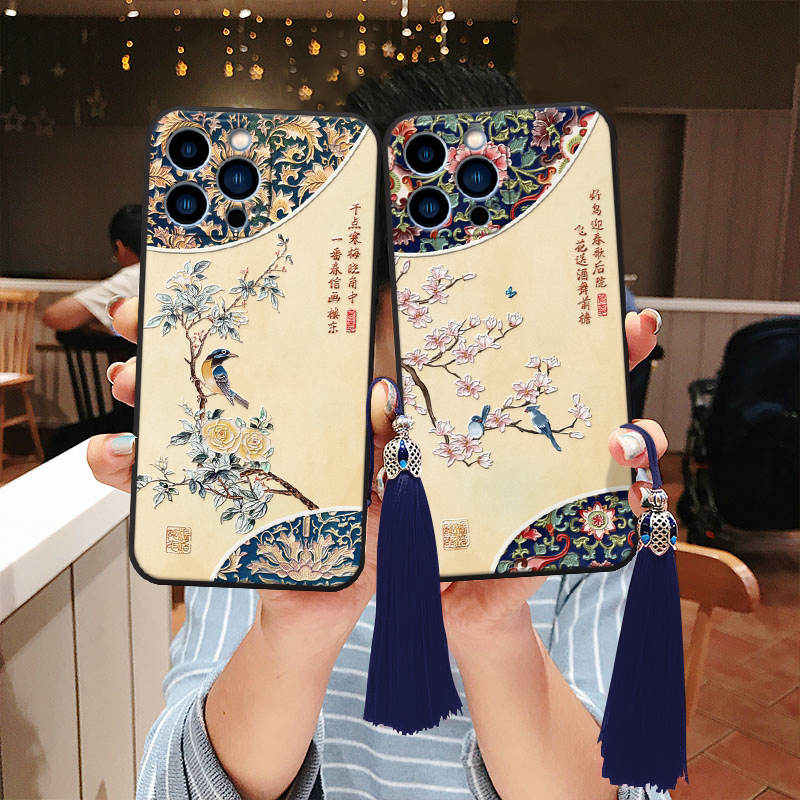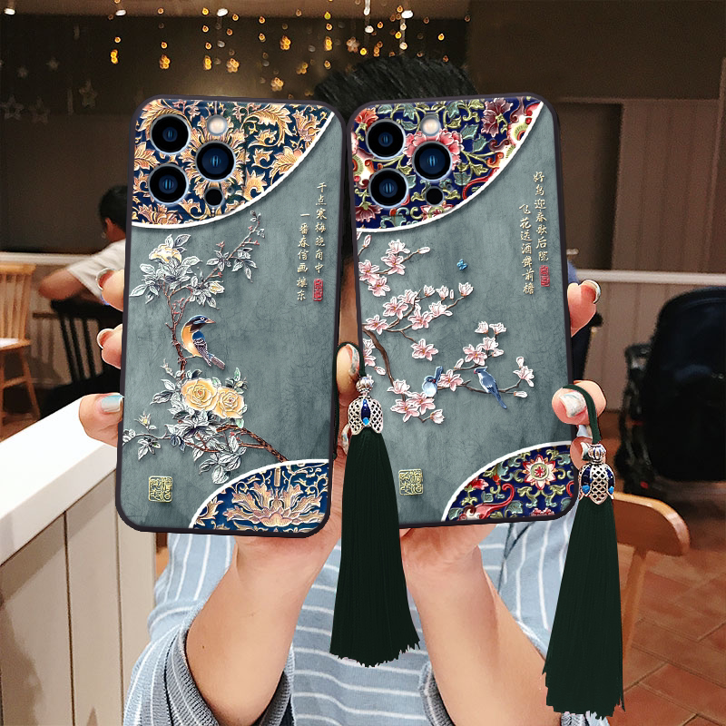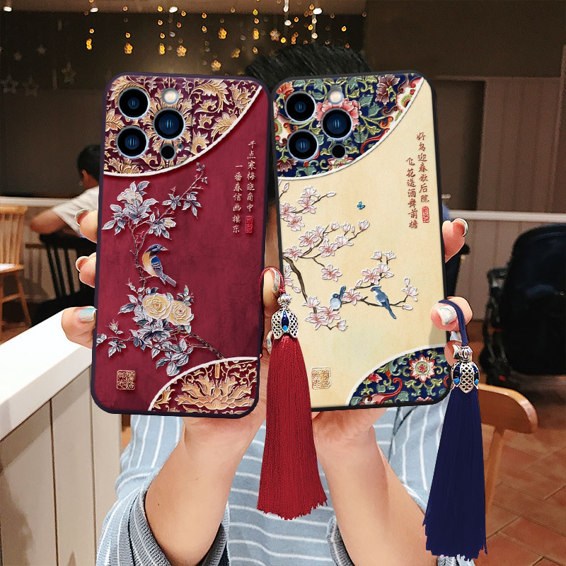 适用苹果立体浮雕17promax花鸟16pro玉兰15手机壳14pro新品13软壳12硅胶se喜鹊xsmax妈妈11国风air老人7防摔8