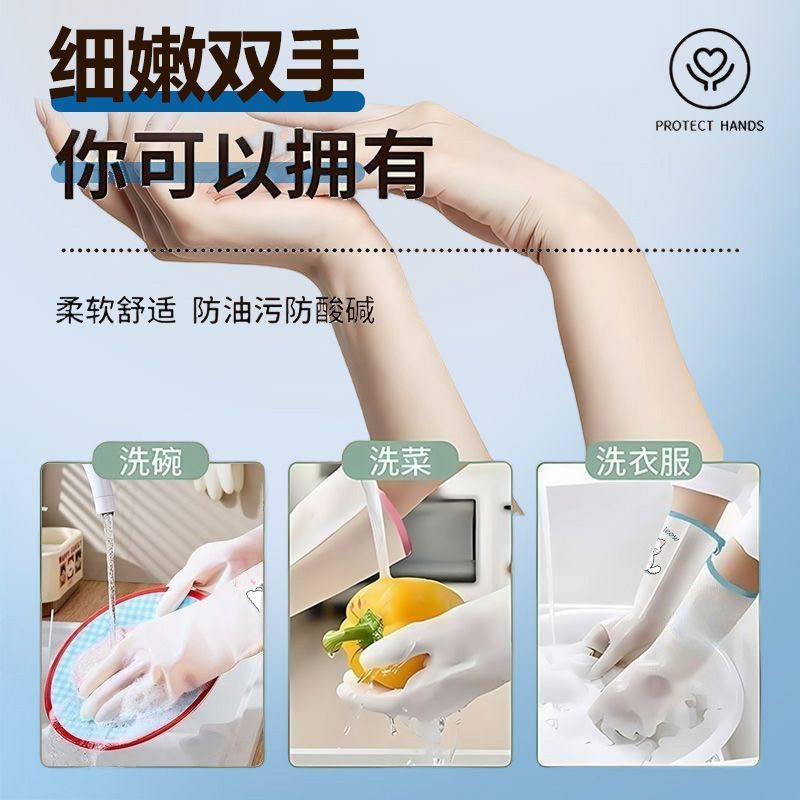 洗碗手套女家用厨房耐用型贴手防水胶皮手套刷碗做家务清洁洗衣服
