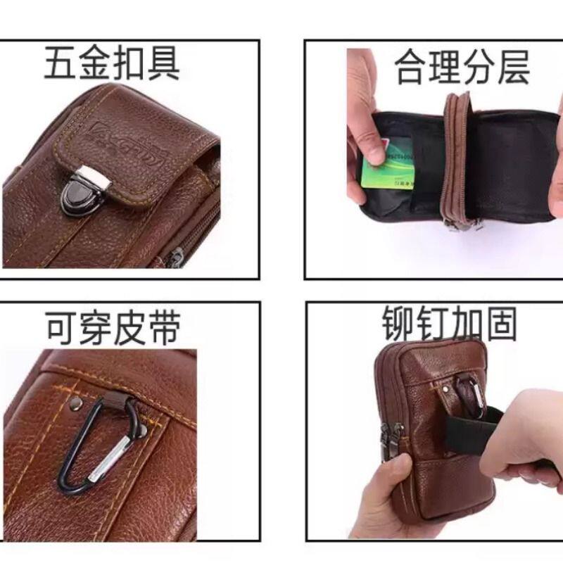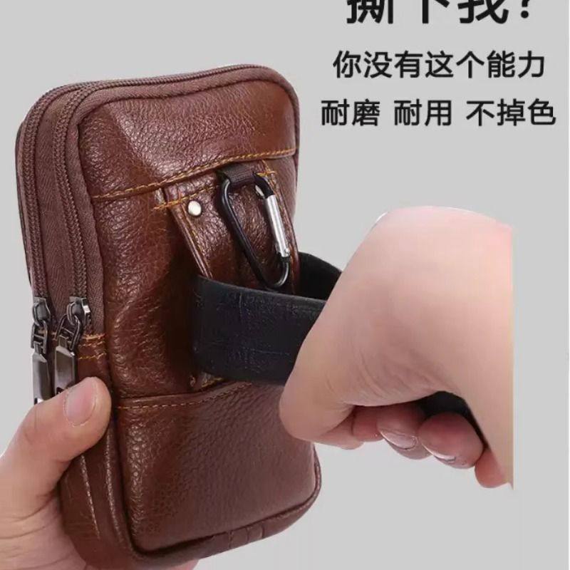 新款纯牛皮手机腰包男士穿皮带多功能户外运动手机袋工地工作挂包