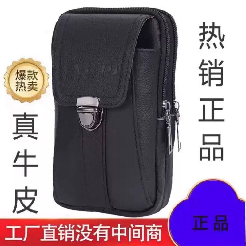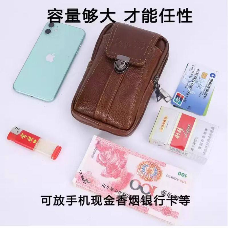 新挂腰牛皮装放手机零钱用的包男穿皮带手机袋中老年人跨腰式腰包