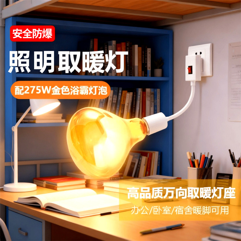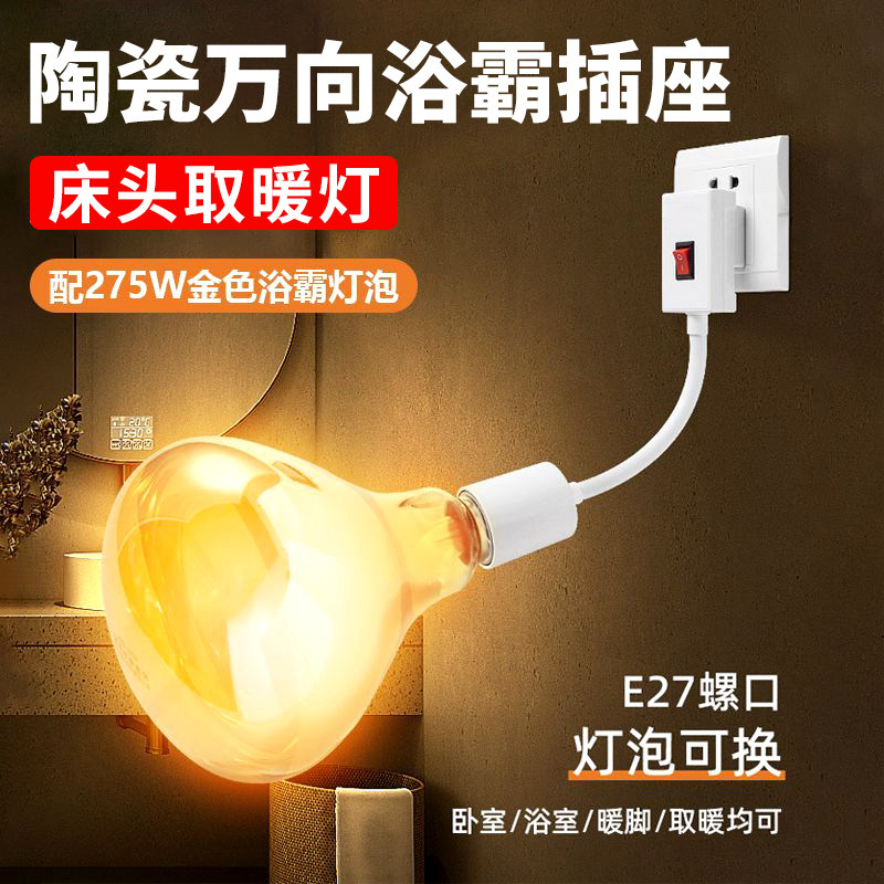 壁挂式浴霸灯泡取暖灯275W卫生间浴室免打孔直插式耐高温陶瓷灯座