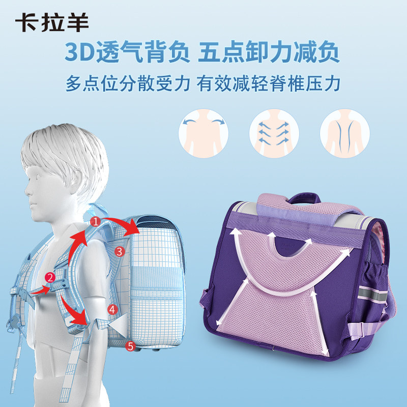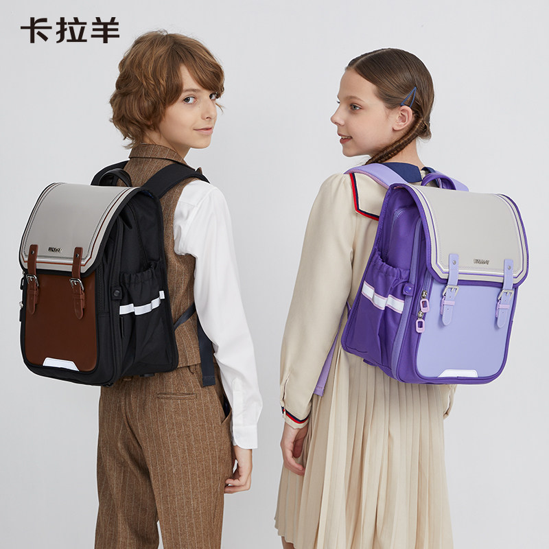 卡拉羊小学生书包女1-4年级儿童男防下坠减负剑桥包轻便横版柠檬树