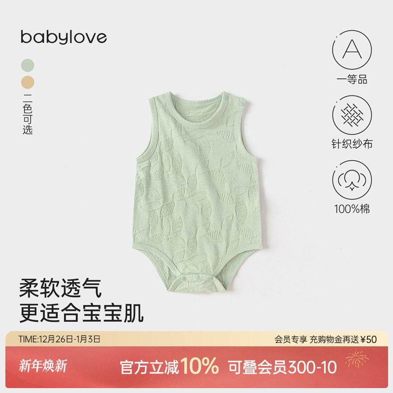babylove婴儿背心包屁衣夏薄款纯棉三角哈衣宝宝浮雕提花无袖衣服